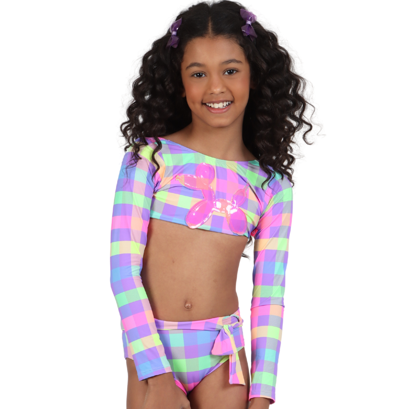 Biquíni Cropped Manga Longa Thais Sweet Color Siri Kids – Estilo e proteção com um toque de doçura