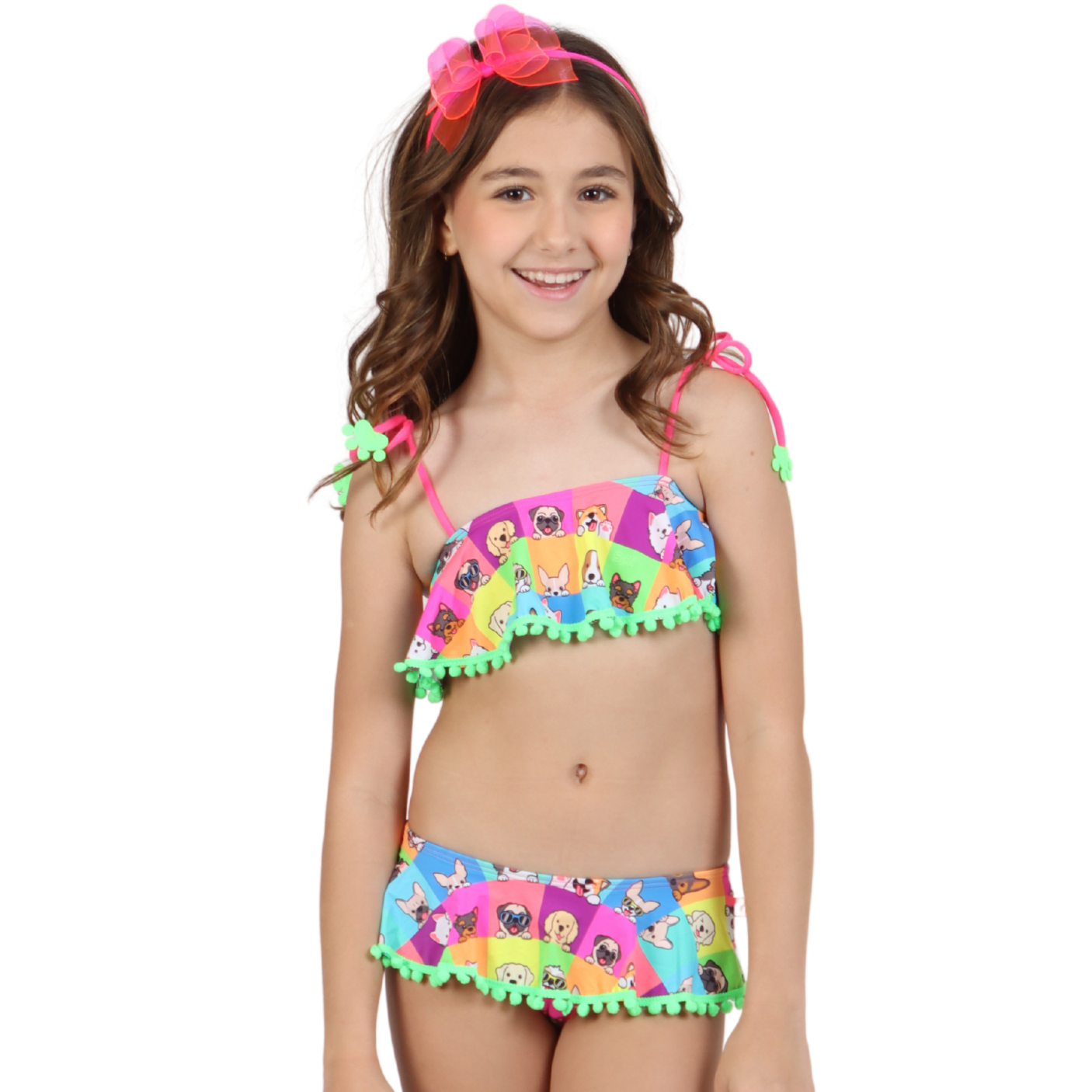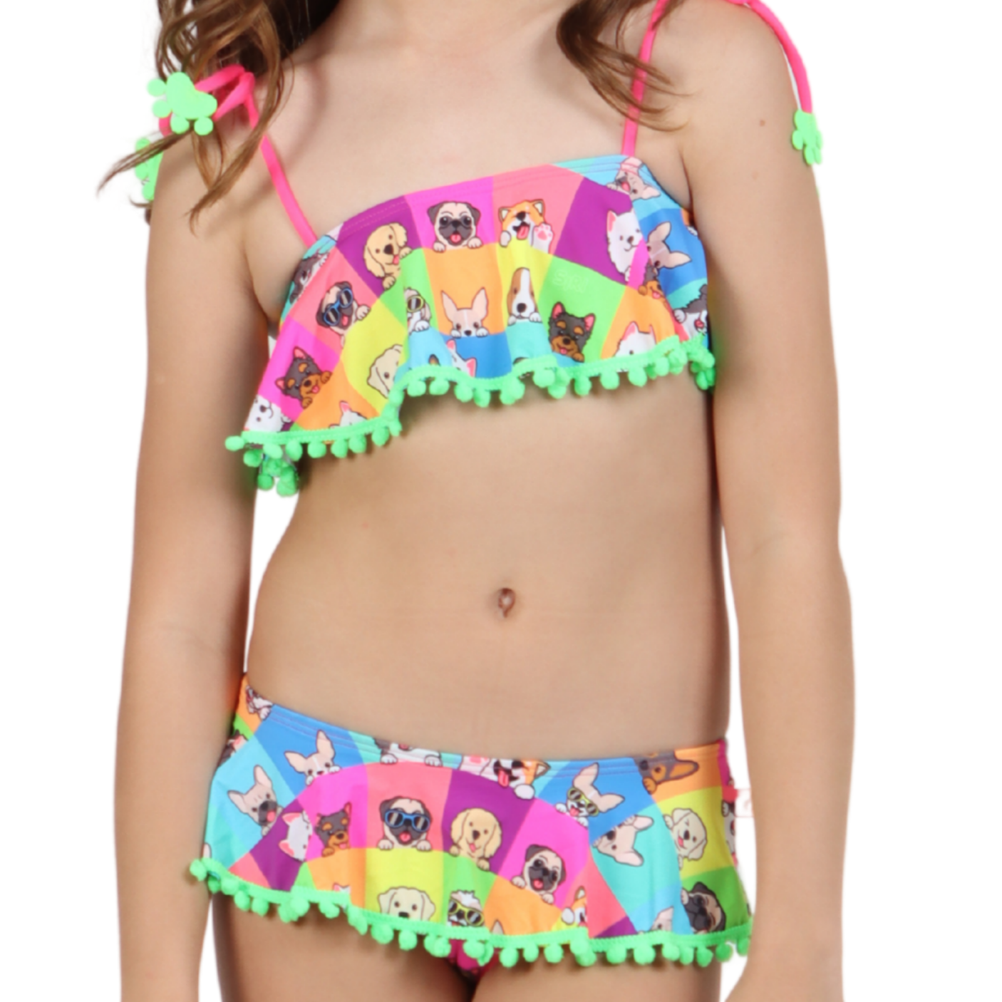 O Biquíni Faixinha Clara Funny Dog Color é a escolha perfeita para as pequenas fashionistas que amam um toque divertido e colorido.