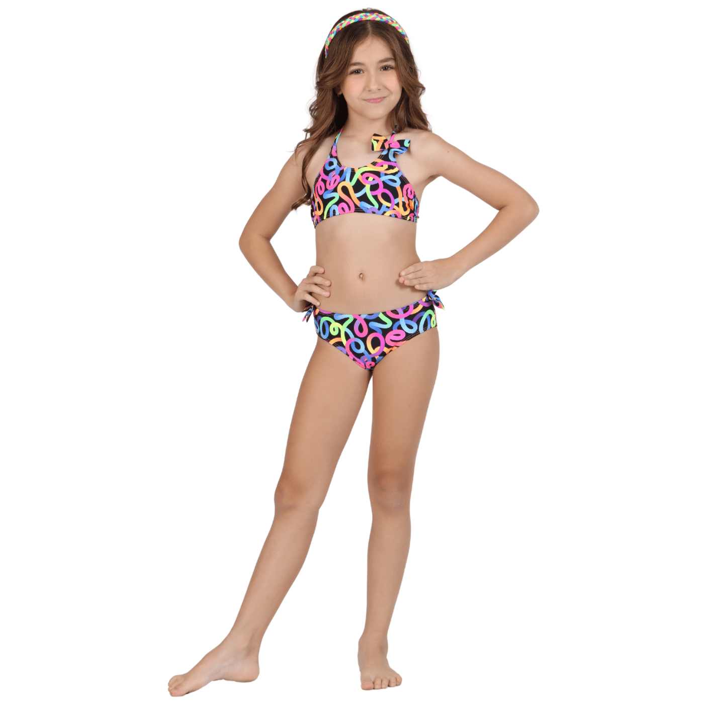 Esse biquíni é ideal para as pequenas cheias de energia e estilo, que amam se divertir com conforto e liberdade.