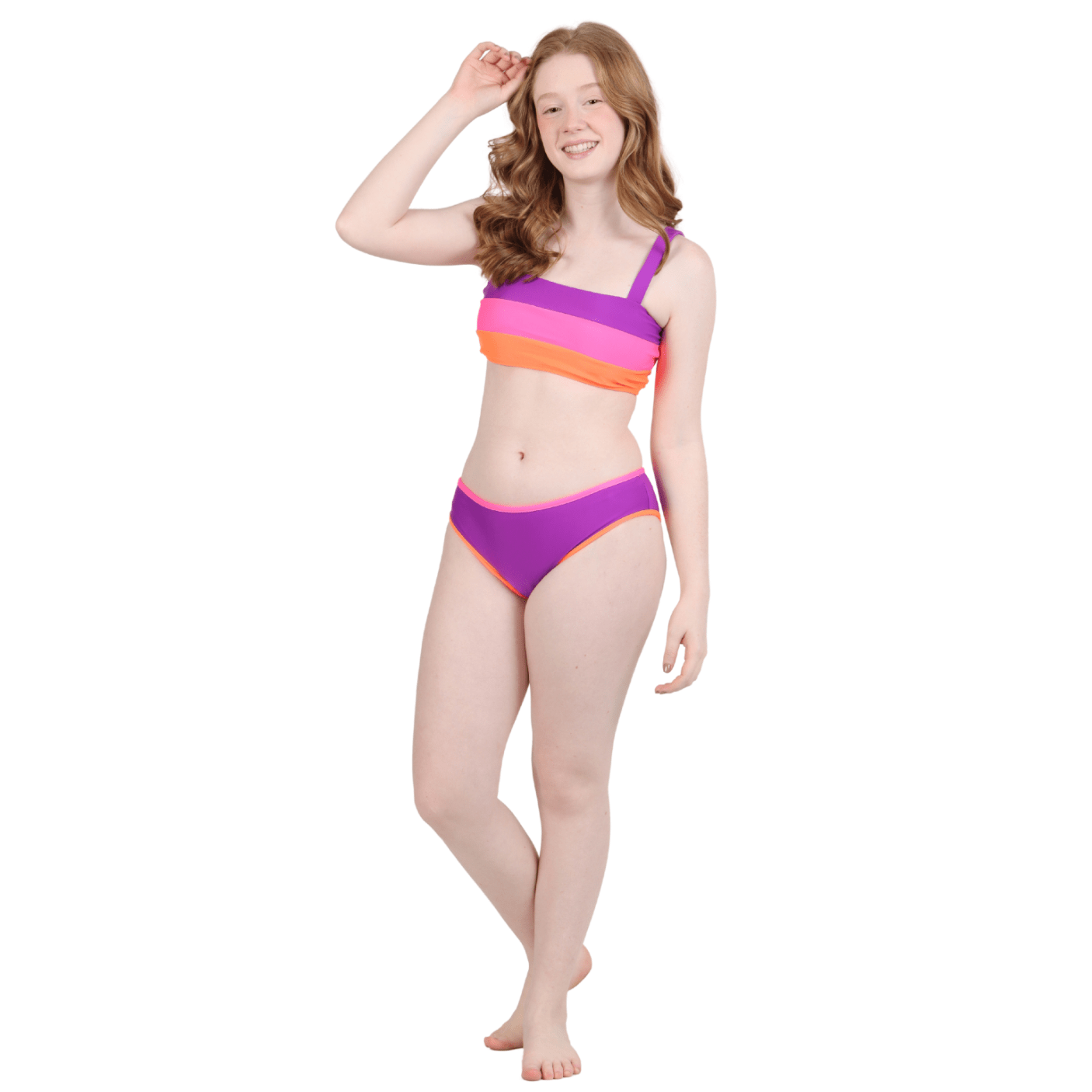 O Biquíni Faixinha Teen Elisa Fuchsia Siri Kids é a escolha perfeita para meninas e adolescentes que buscam unir estilo, conforto e personalidade nos dias de sol. Com um design moderno e fashion, ele aposta nas cores vibrantes em tons de roxo, lilás e laranja em listras horizontais, criando um visual alegre, despojado e cheio de atitude.