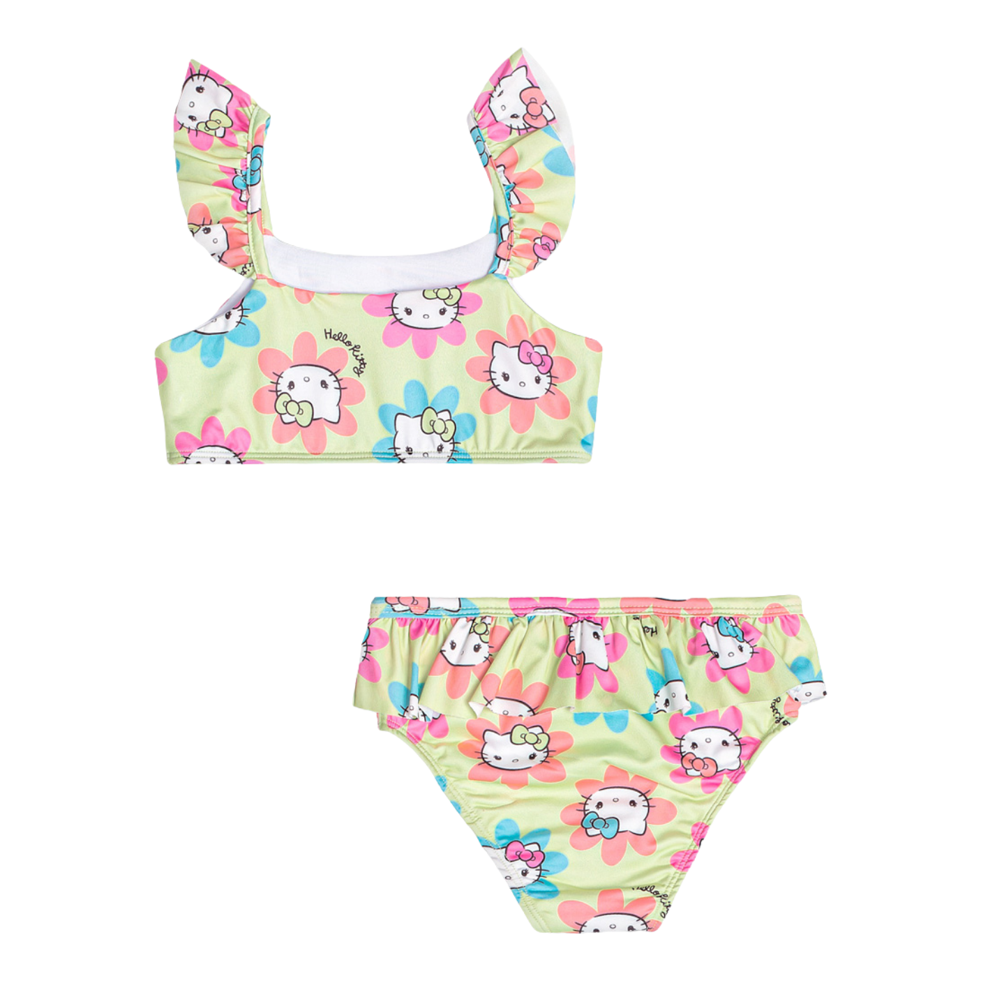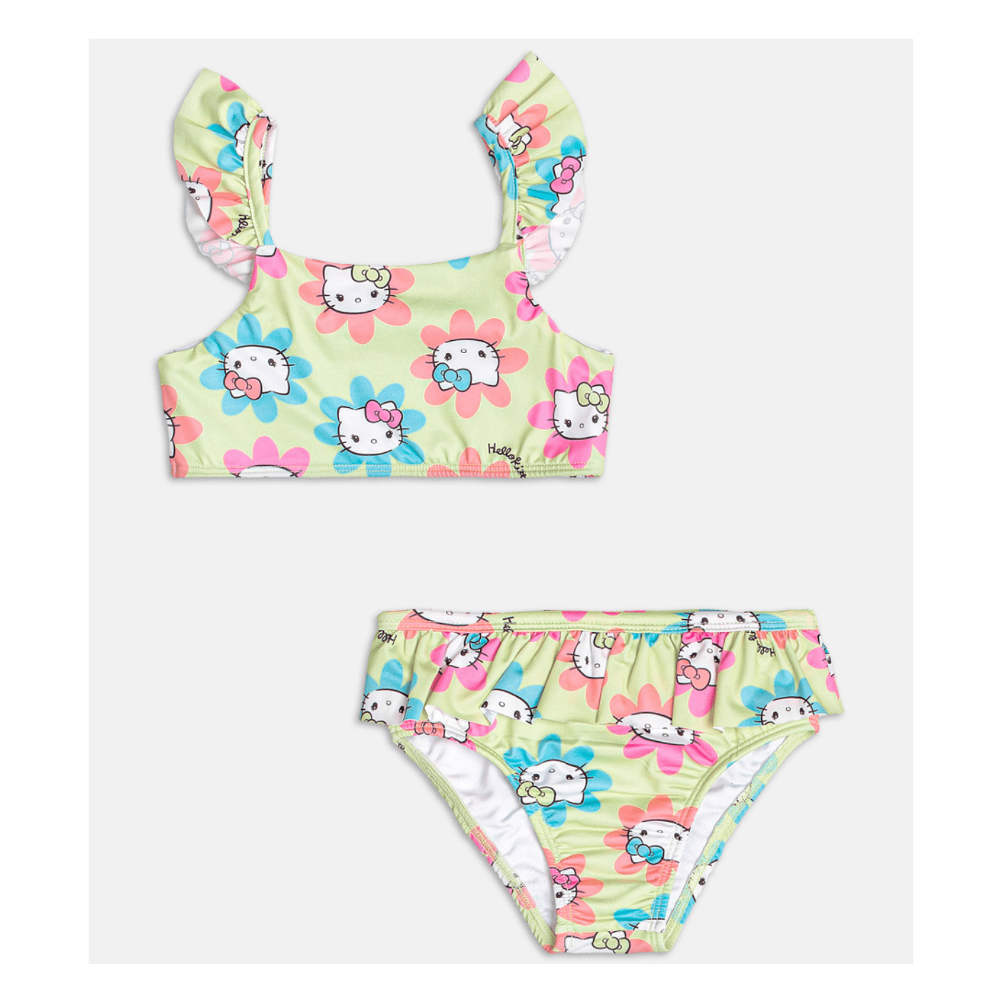 Biquíni Hello Kitty Flores Verde Momi – Proteção, Conforto e Muita Fofura!
