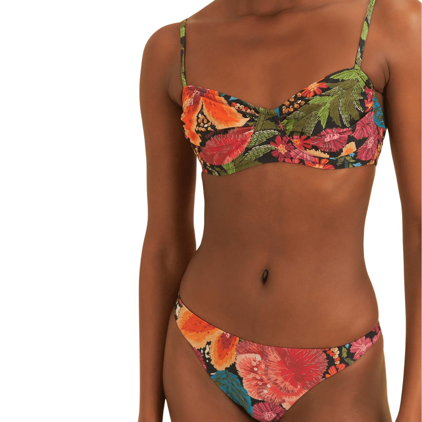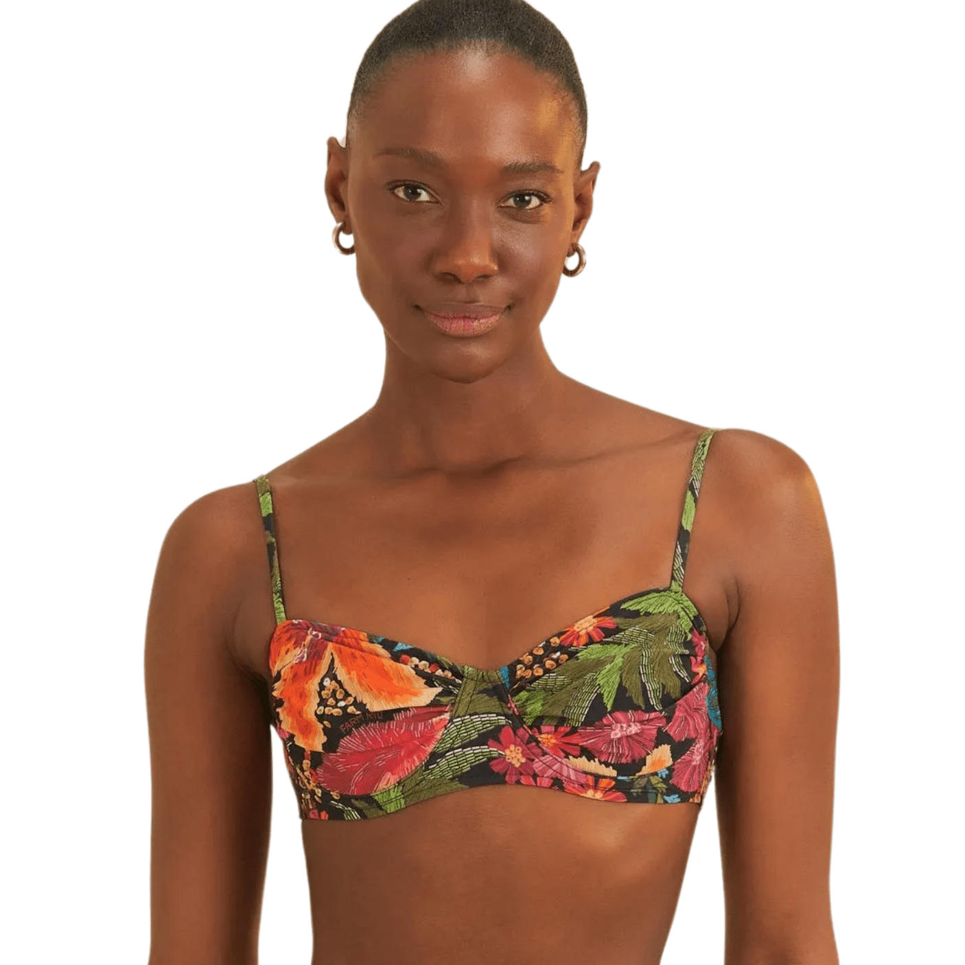 O Biquíni Meia Taça Estampado Bordadeira FARM Rio une autenticidade, estilo e sustentação em uma peça sofisticada e cheia de personalidade. Com modelagem meia taça, valoriza o busto com leve estrutura, enquanto as alças finas ajustáveis e o fecho nas costas garantem conforto e segurança ao vestir.