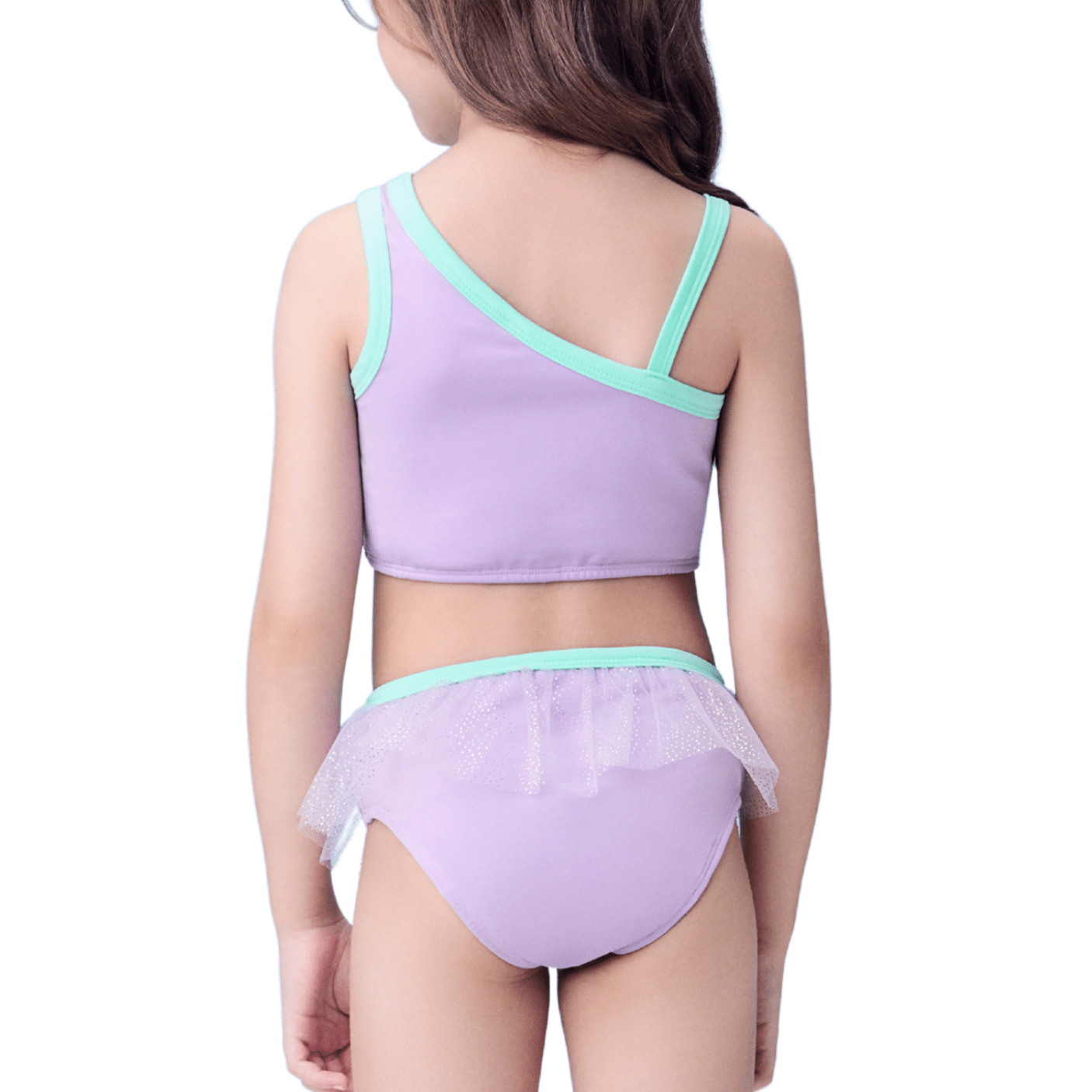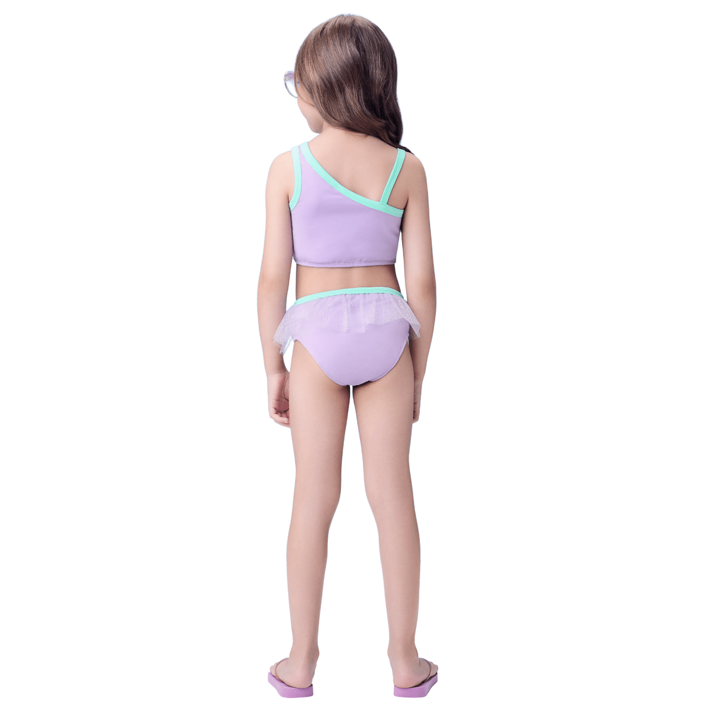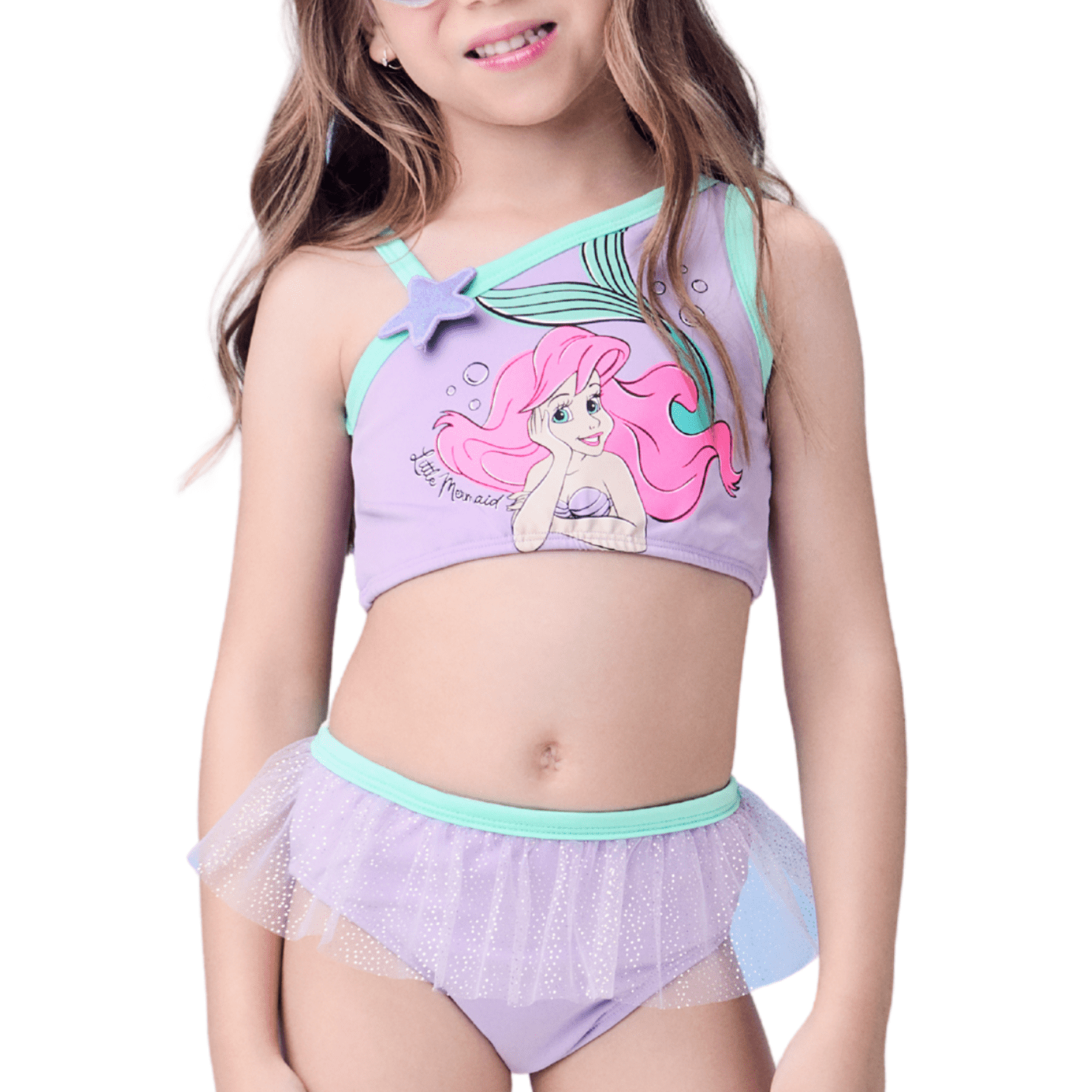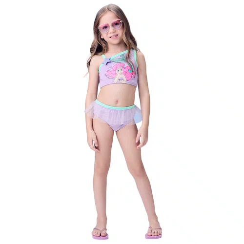 O Biquíni Pequena Sereia Lavanda Momi é pura magia para as pequenas que adoram o universo das princesas.