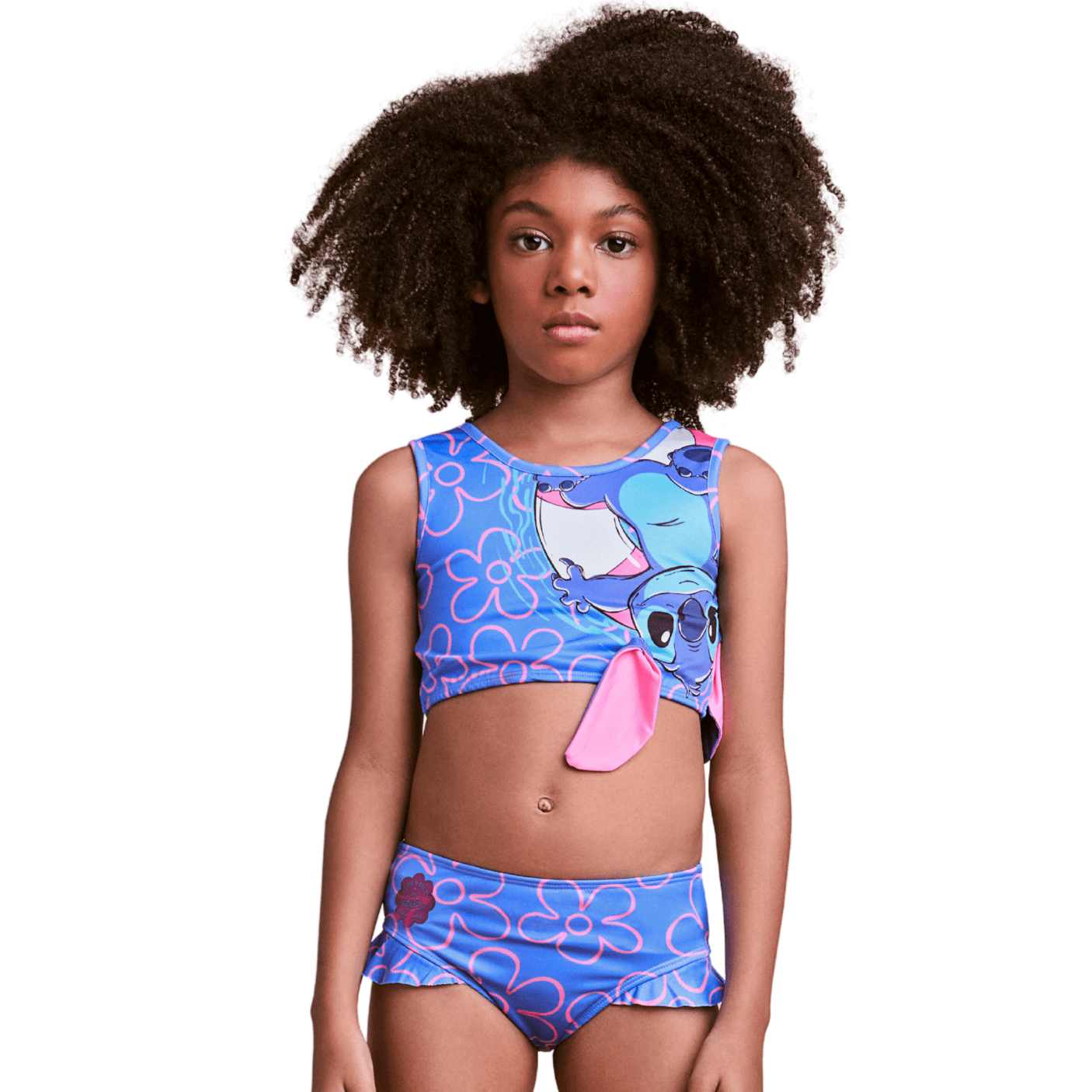 O Biquíni Stitch Orelhinhas Summer Flower da Animê traz o carisma do personagem mais amado da Disney para a moda praia infantil, em uma proposta divertida, confortável e cheia de personalidade. Inspirado no universo tropical de Lilo & Stitch, o conjunto garante estilo e liberdade para brincar, nadar e aproveitar os dias de verão com leveza.