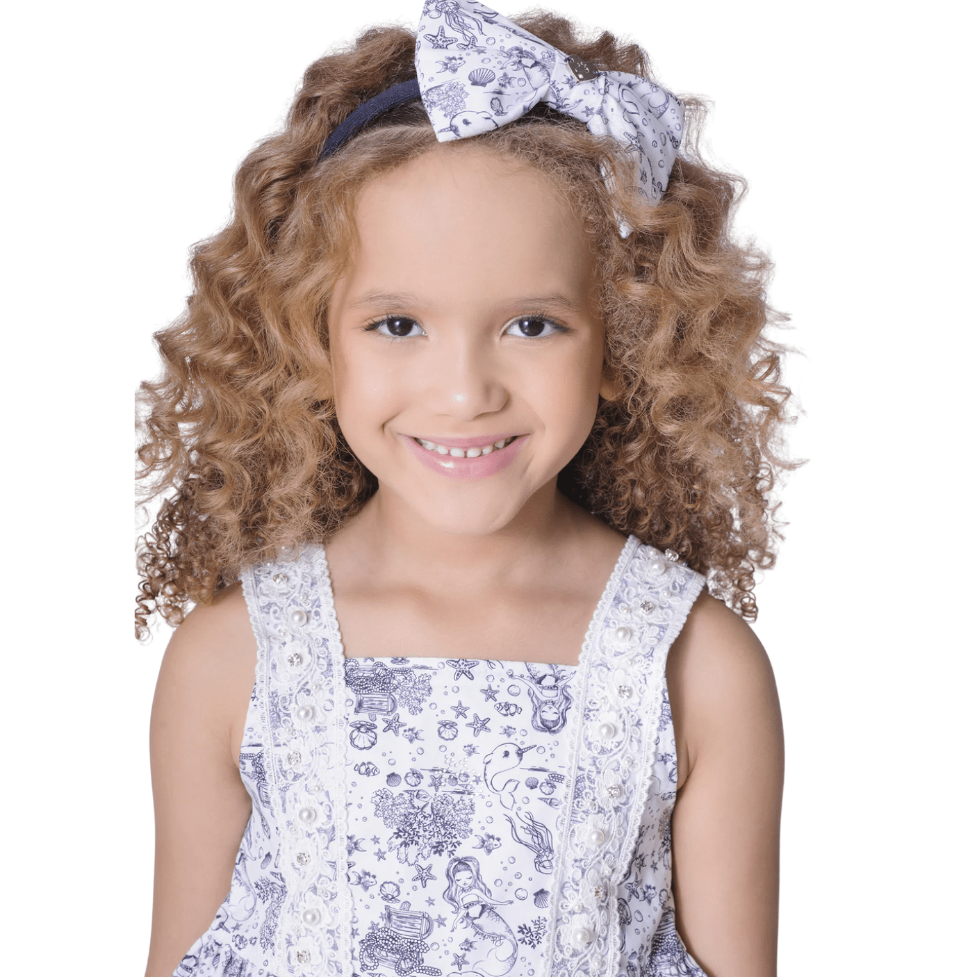 Com estampa inspirada no clássico Toile de Jouy, em tons suaves e desenhos de sereias encantadoras, o modelo traduz o universo mágico da infância com muito estilo. As alças largas com bordados delicados em renda dão um toque artesanal e romântico, enquanto o caimento soltinho proporciona liberdade de movimento e leveza.