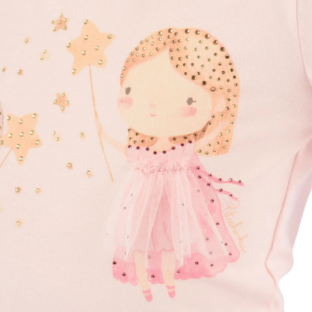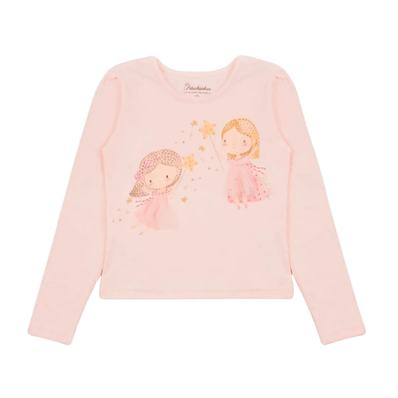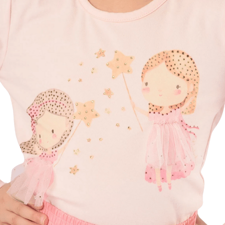 Estampa exclusiva de Fadinhas com saias de tule, trazendo um universo lúdico e mágico para o dia a dia.