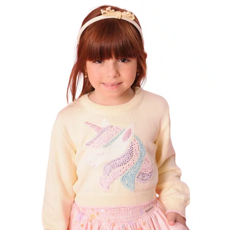 Peça icônica da coleção Pituchinhus, este cropped em tricot premium reinterpreta o imaginário lúdico dos unicórnios com sofisticação contemporânea. O design combina:
