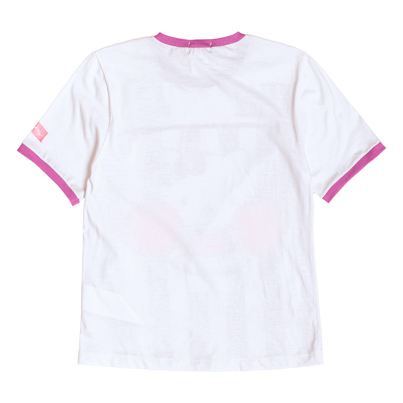 Esta encantadora blusa em branco e rosa é perfeita para meninas cheias de personalidade e estilo. Com uma estampa vibrante da Hello Kitty como líder de torcida, ela inspira alegria, confiança e diversão. As listras delicadas nas mangas trazem um toque esportivo moderno, criando um visual dinâmico e super atual. Confeccionada em tecido macio e respirável, proporciona conforto durante todo o dia — seja nas brincadeiras, passeios ou ocasiões especiais. Versátil e cheia de atitude, combina perfeitamente com calças, saias ou shorts para compor looks adoráveis que não passam despercebidos.