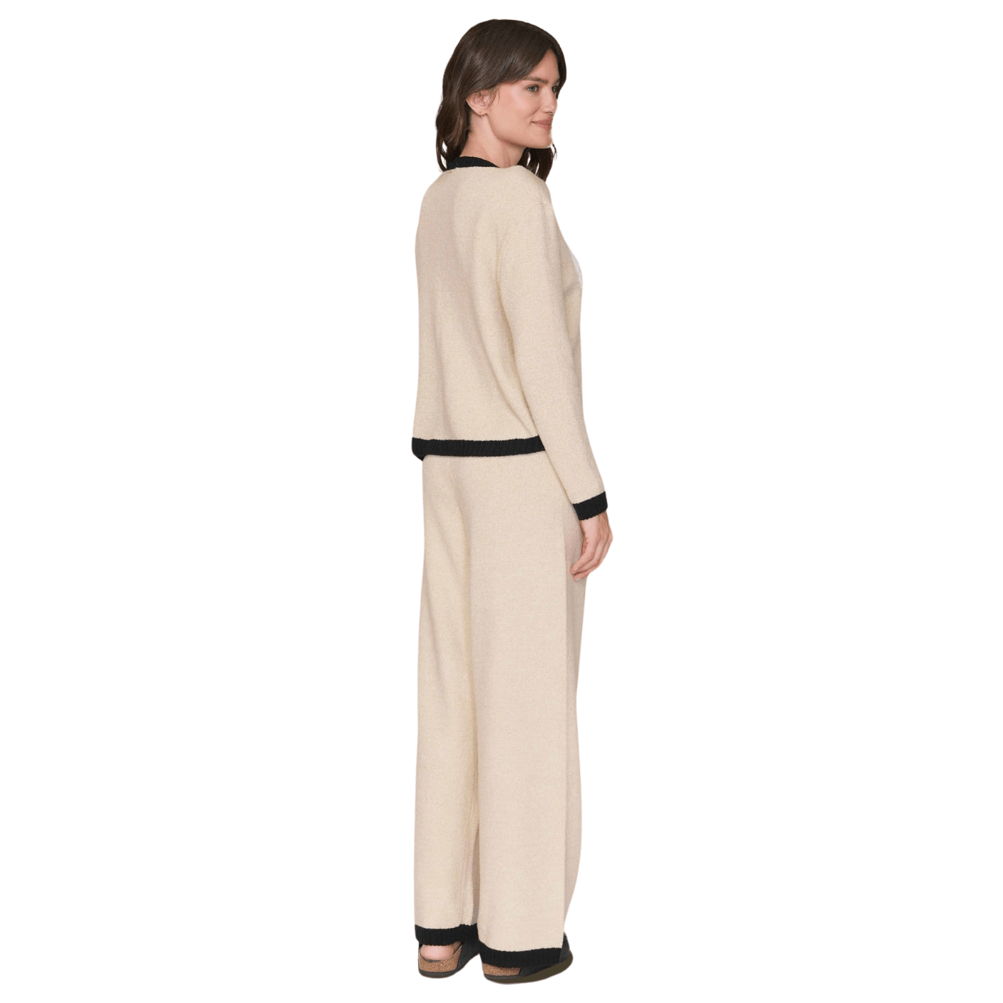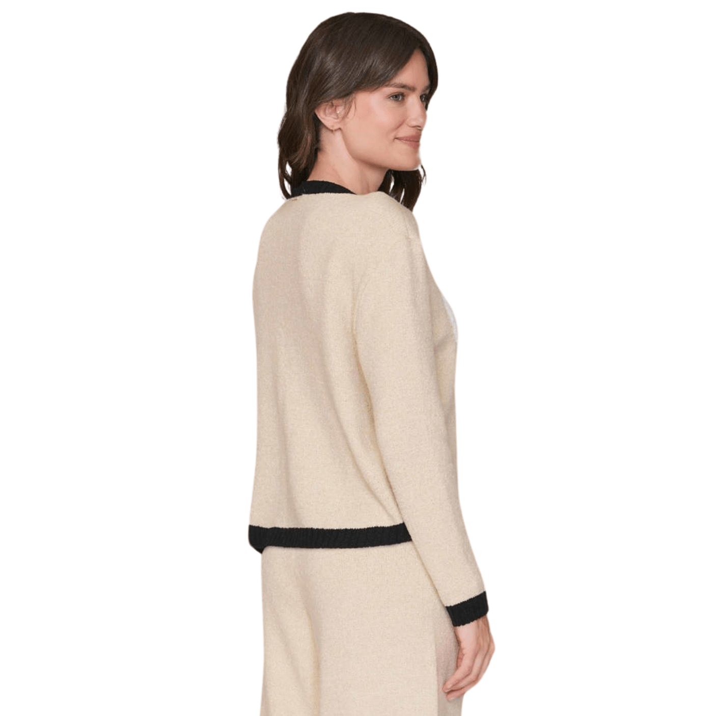Seu decote redondo clássico valoriza o colo de forma sutil, enquanto o acabamento canelado e as listras contrastantes na barra e nos punhos dão um toque moderno e despojado à peça. Essa blusa vai além do essencial — ela é uma forma de expressar sua individualidade com conforto e autenticidade.