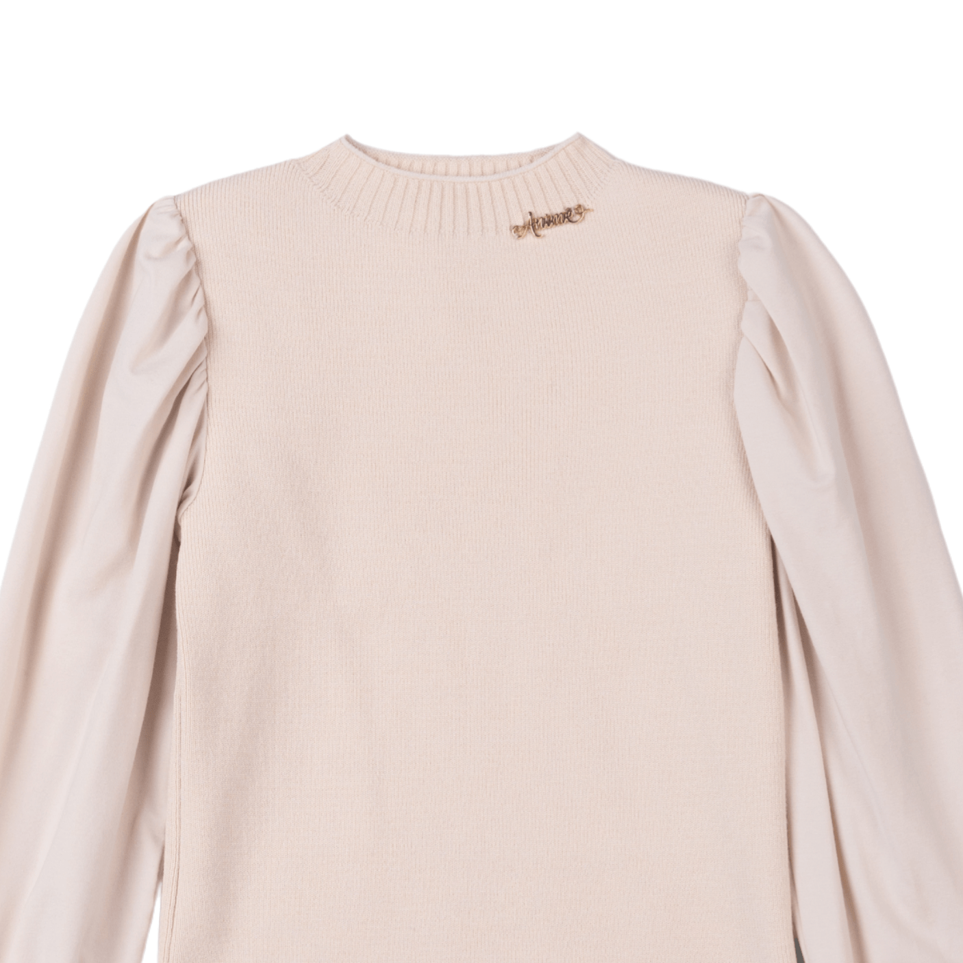 Blusa Canelada Off-White com Mangas Bufantes – Delicadeza e Elegância para os Dias Frios | Animê
