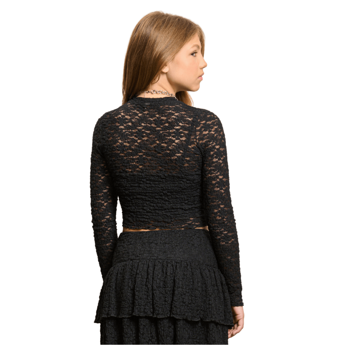 A Blusa Manga Longa Renda Preto Authoria é a escolha perfeita para looks modernos, sofisticados e cheios de atitude para o público teen