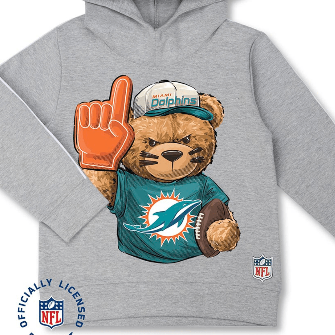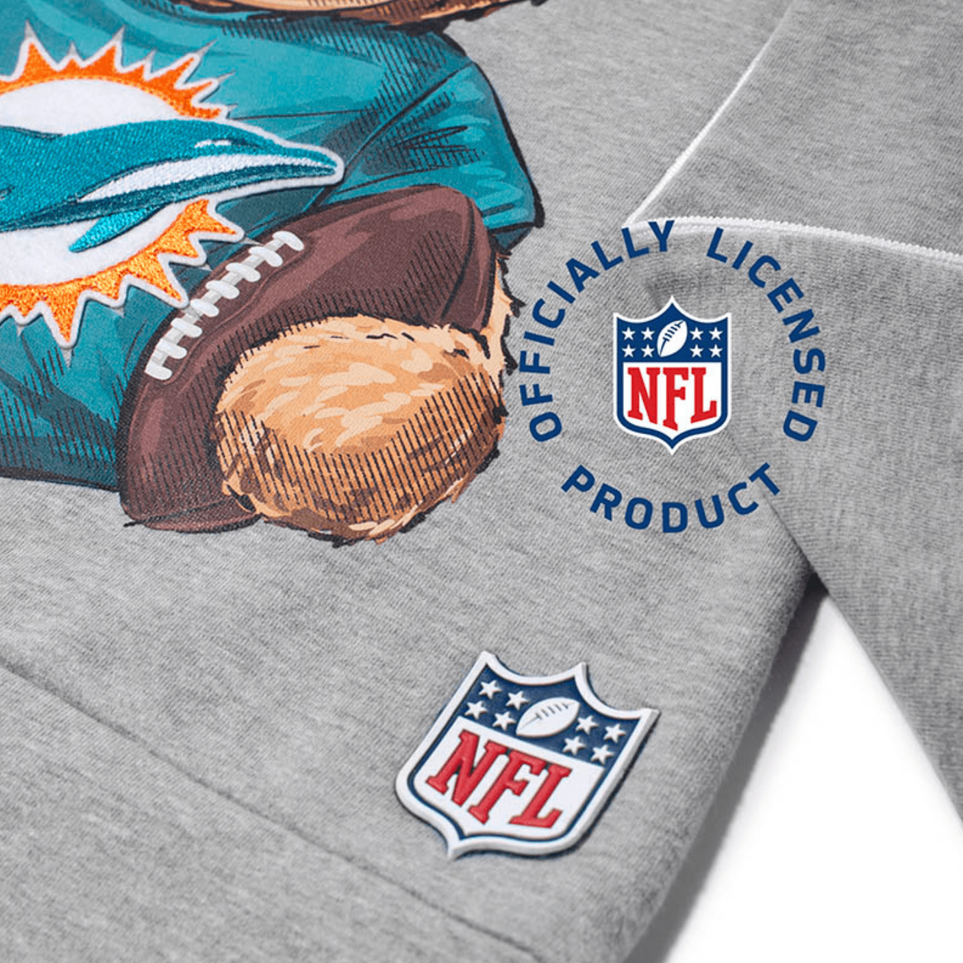 Produzida em moletom leve de altíssima qualidade, possui toque macio, capuz funcional e acabamento impecável. A estampa frontal com o mascote Teddy usando o uniforme oficial dos Dolphins deixa o visual ainda mais encantador e cheio de atitude. Produto oficialmente licenciado pela NFL, garantindo autenticidade, durabilidade e muito estilo.
