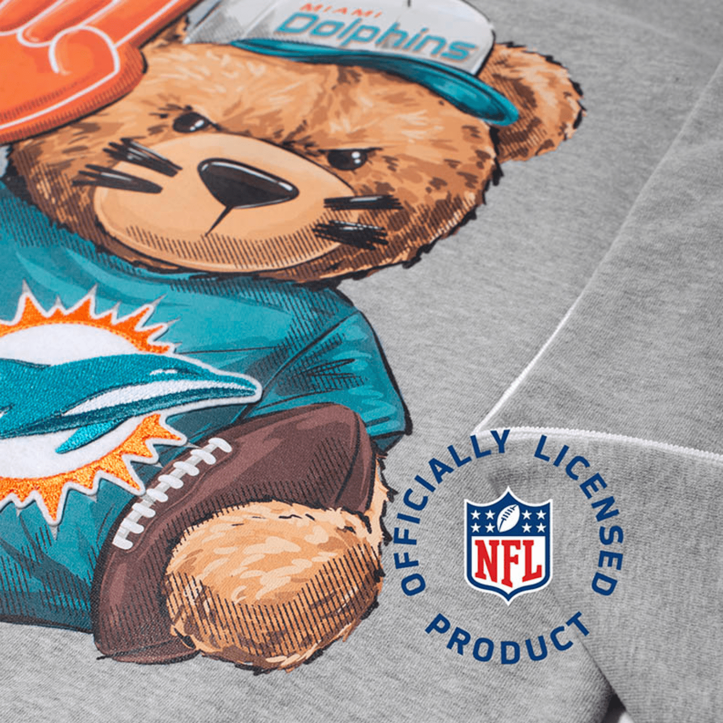 A Blusa Infantil NFL Teddy Miami Dolphins Cinza Dame é a peça perfeita para os pequenos fãs do futebol americano que adoram conforto, estilo e diversão! Com estampa exclusiva do ursinho torcedor dos Miami Dolphins, a peça traz um visual moderno e superdescolado, ideal para o dia a dia, passeios e looks temáticos.