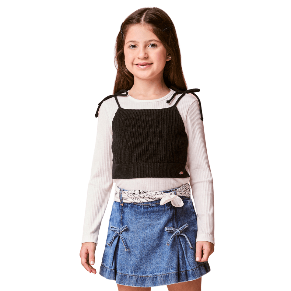 Sobreposição com top em tricot preto