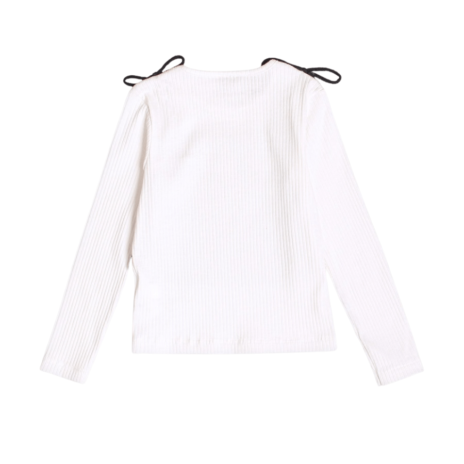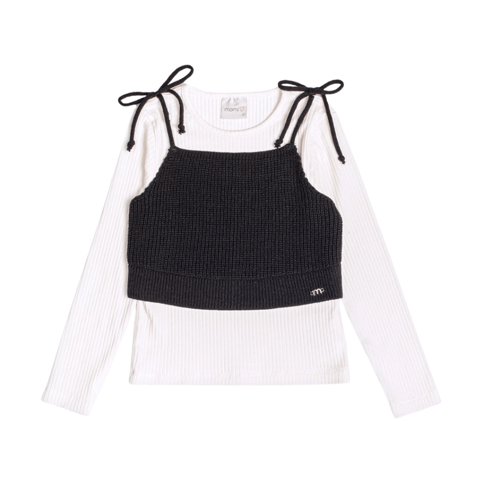 A Blusa Off White com Top Tricot Preto Momi é a combinação perfeita entre modernidade e delicadeza.