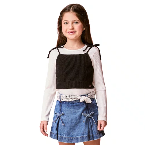 Blusa Off White com Top Tricot Preto Momi