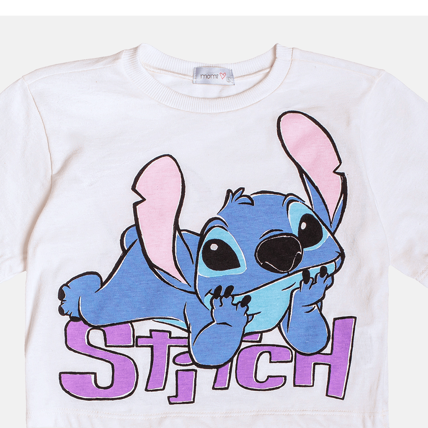 Na parte da frente, a estampa vibrante e colorida ganha um toque especial, que adiciona brilho e destaque ao visual — um detalhe que encanta e traz aquele charme extra que as meninas adoram. E como o estilo está presente de todos os ângulos, nas costas a presença divertida do Stitch deixa a peça ainda mais completa e surpreendente.