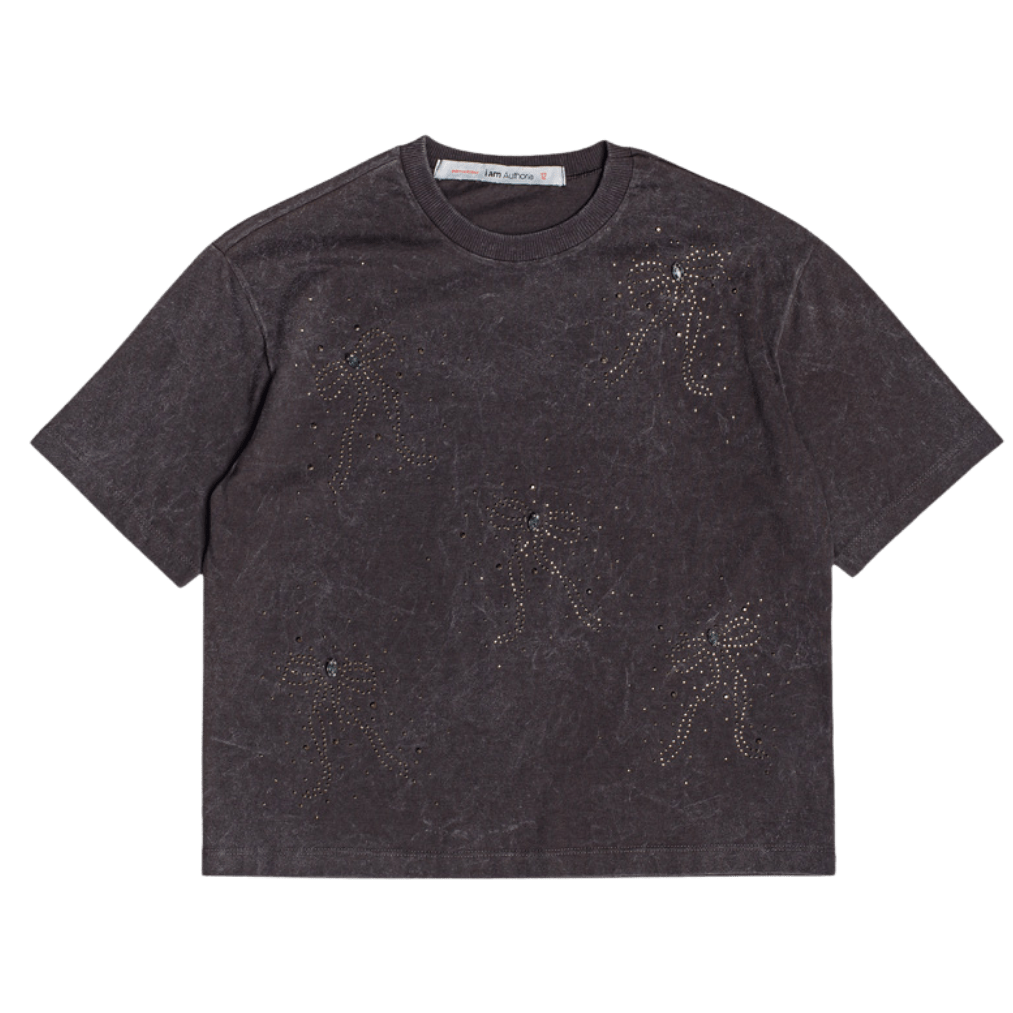 Blusa T-Shirt Laço Pedraria Grafite Authoria