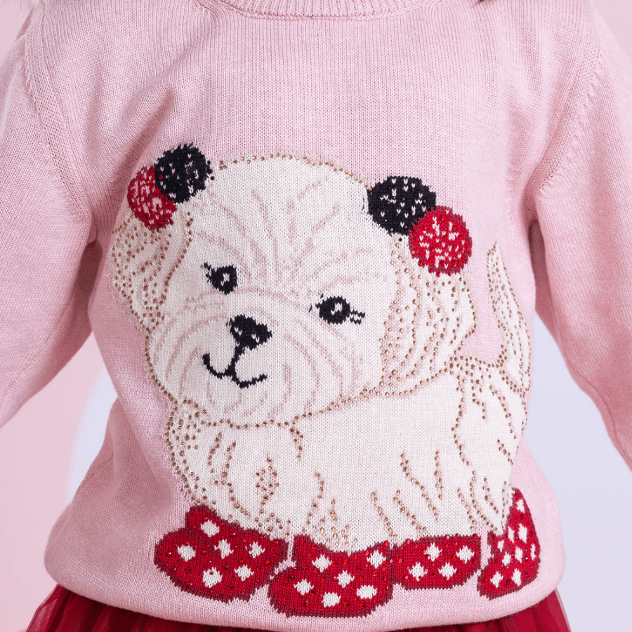 Blusa Tricot Cachorrinho Pompom Cristais Pituchinhus