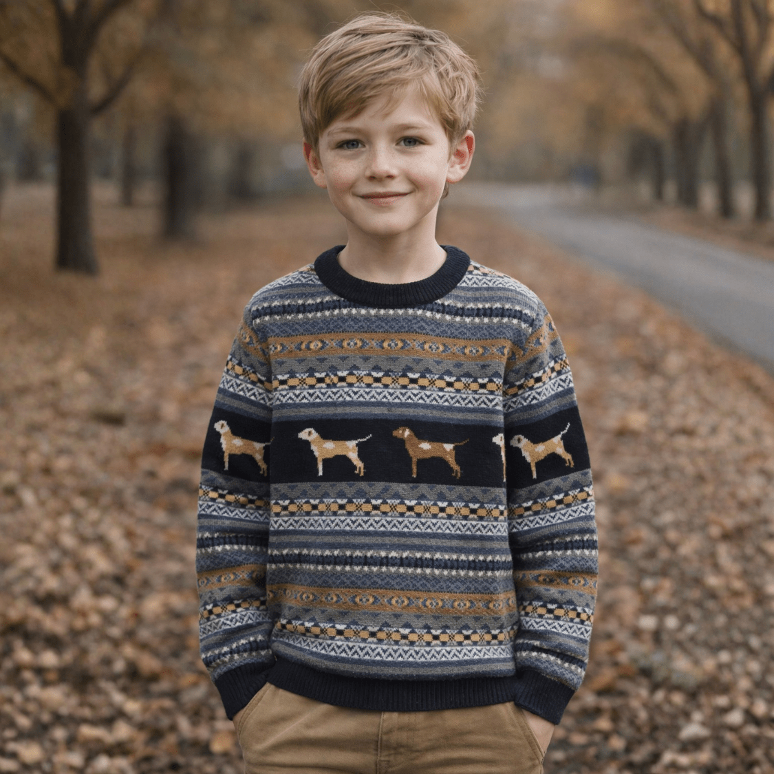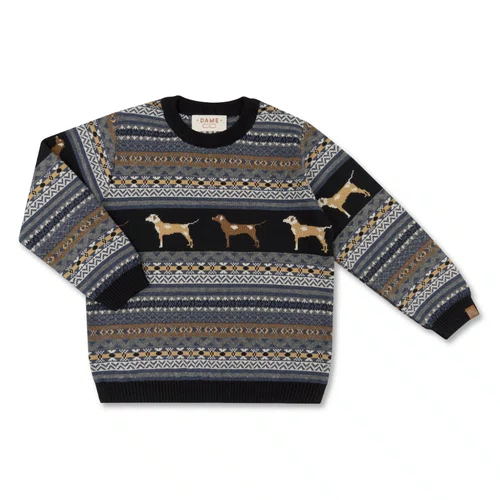 A Blusa Tricot Jacquard Preto Cachorros Dame é uma peça cheia de personalidade, perfeita para compor looks infantis de inverno com estilo e conforto. O modelo apresenta um padrão jacquard com detalhes geométricos e ilustrações de cachorros, criando um visual moderno, divertido e sofisticado.