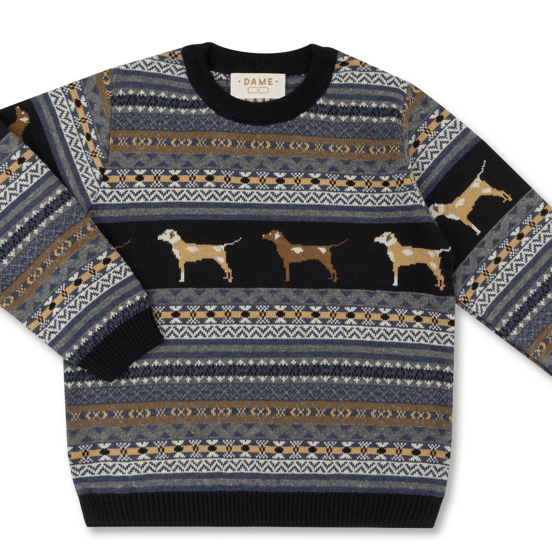 Blusa Tricot Jacquard Preto Cachorros Dame