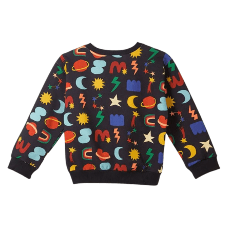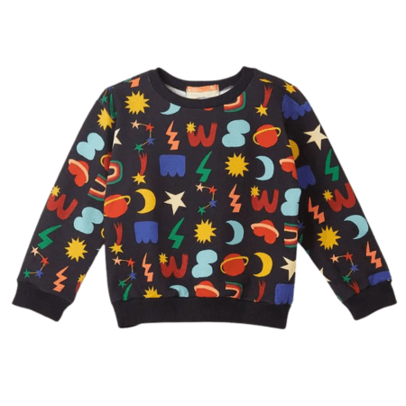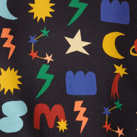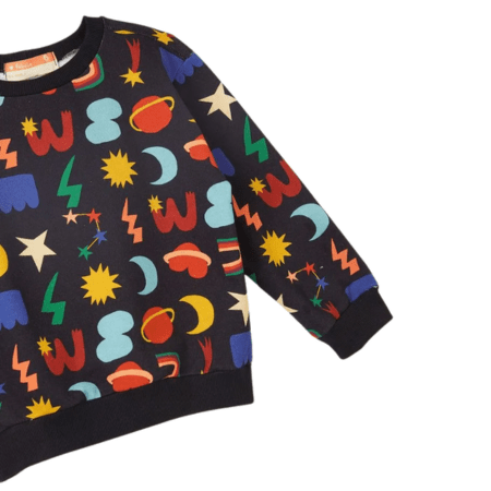 O grande destaque da peça é a estampa exclusiva Cosmotipo, com desenhos coloridos, lúdicos e cheios de imaginação – perfeita para expressar a criatividade das crianças e transformar qualquer look em uma verdadeira brincadeira de estilo.