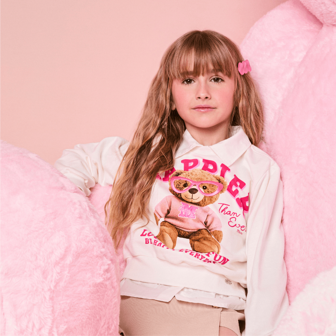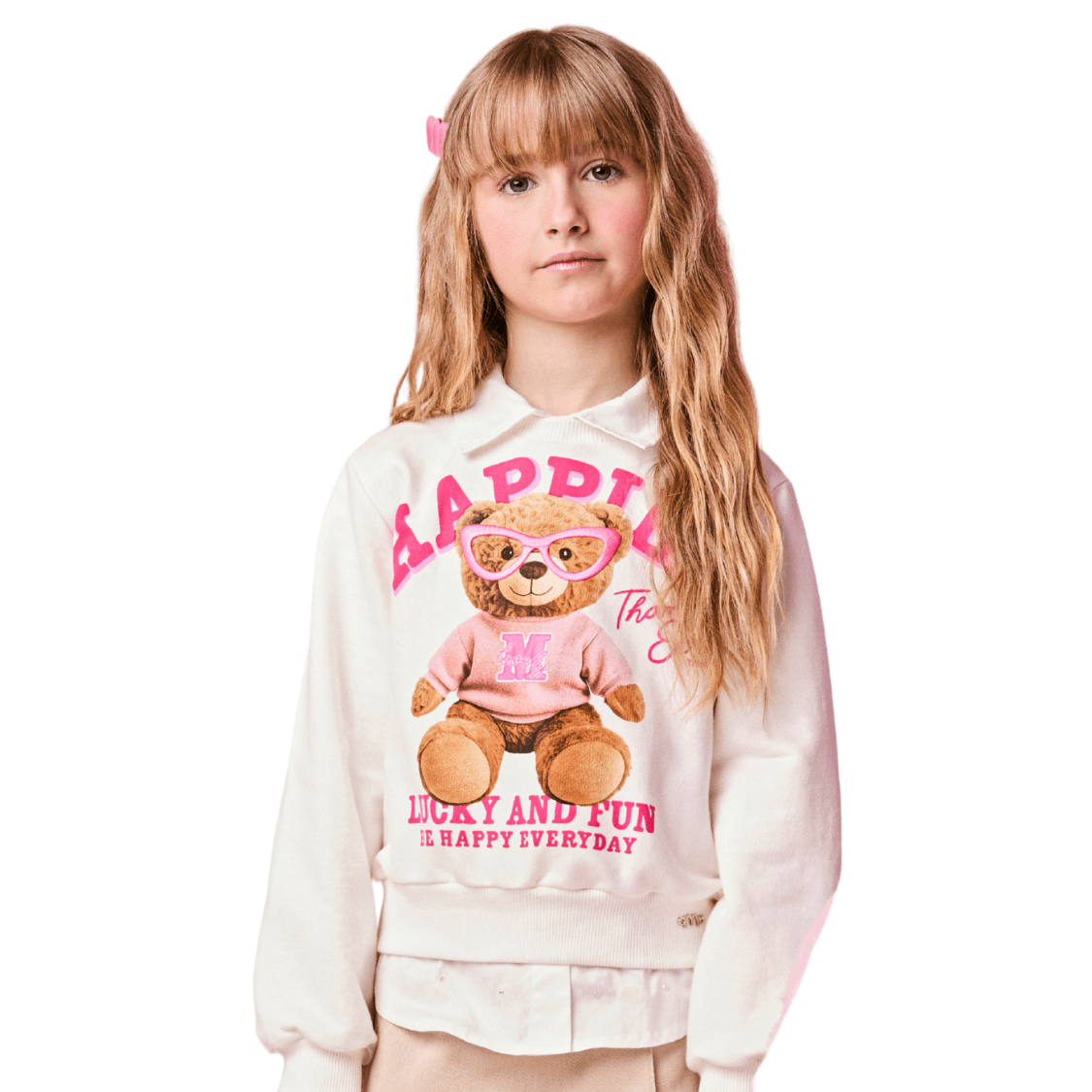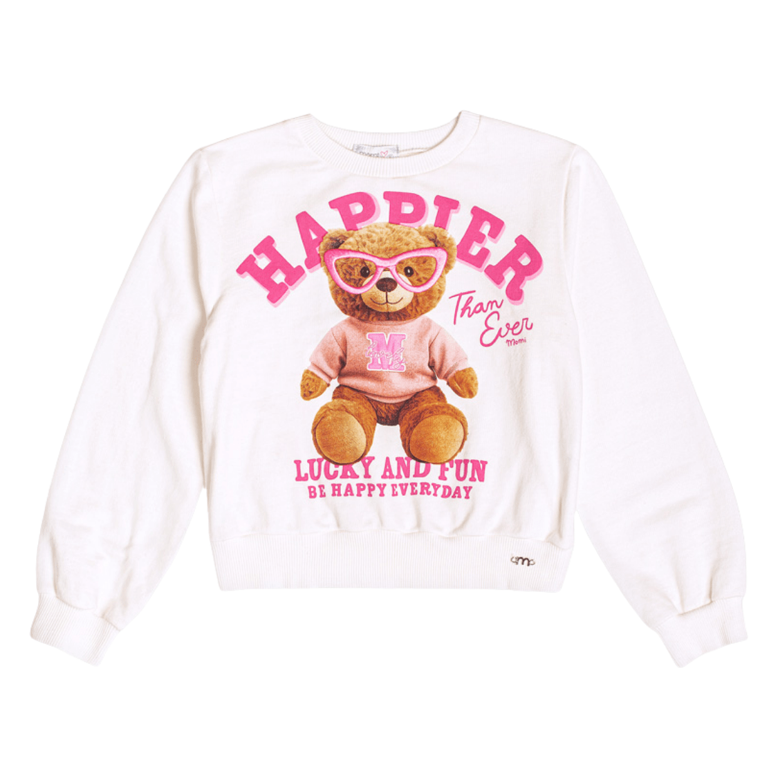O Blusão Moletom Urso Happier Bege Momi é a escolha perfeita para meninas que amam conforto com um toque fashion e divertido! Com uma estampa super fofa de ursinho, a peça traz um visual moderno e cheio de personalidade para os dias mais fresquinhos.
