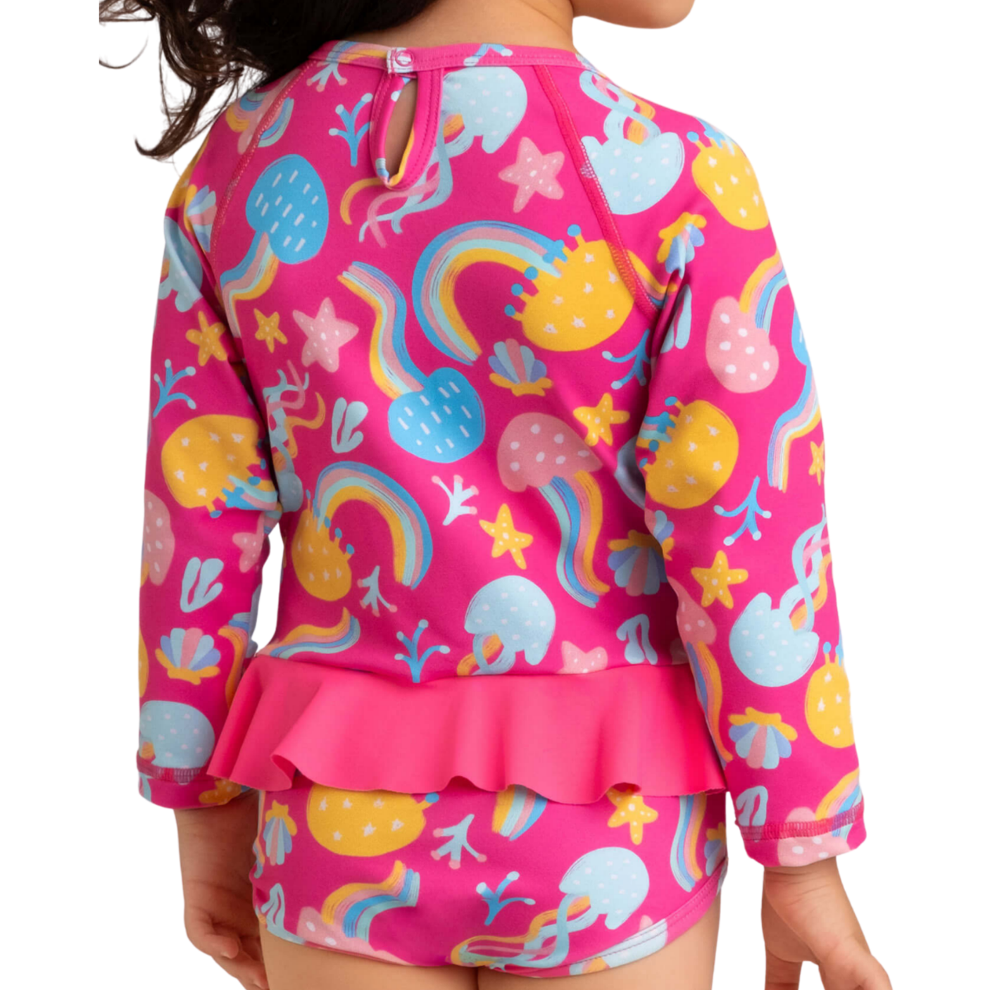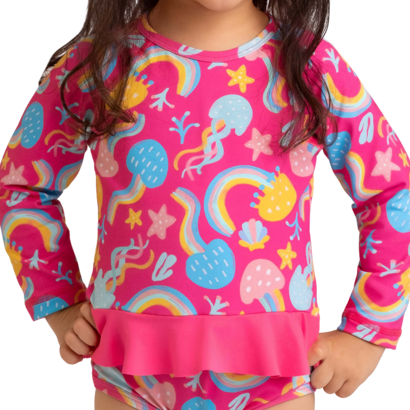 Body Manga Longa Pink Água Viva Dedeka – Proteção Solar, Conforto e Estampa Divertida para as Pequenas Exploradoras do Mar