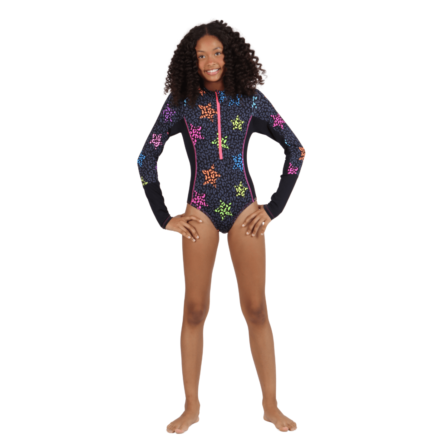 Body Teen Manga Longa Rafaela Onça Star Neon Siri Kids – Proteção e Estilo com Atitude Teen