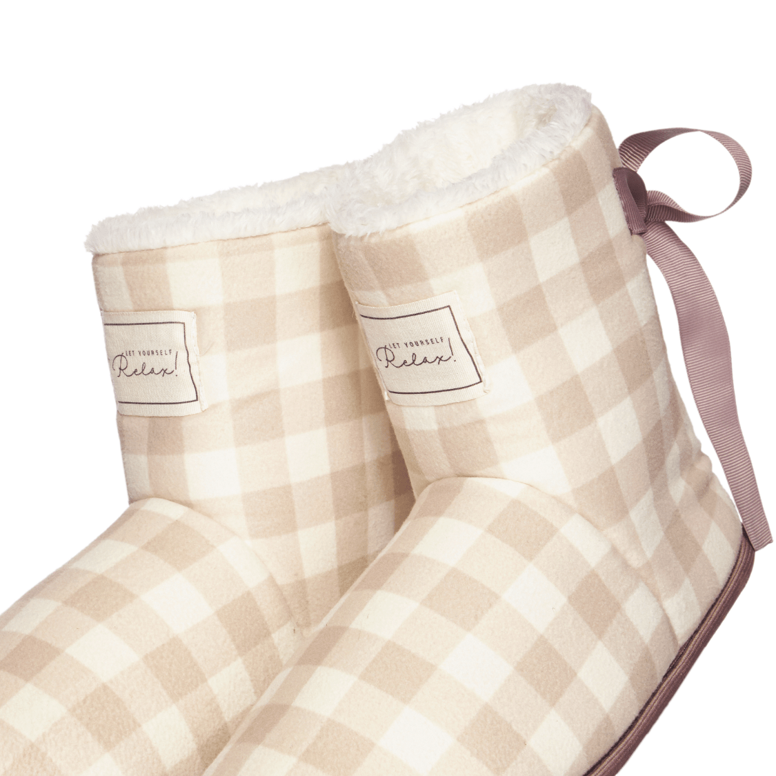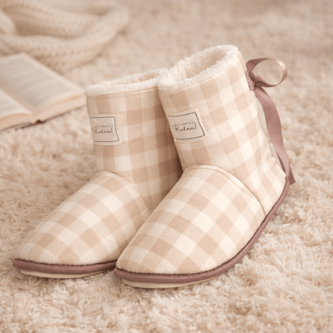 Confeccionada com tecido suave e forro interno peluciado, essa bota proporciona uma sensação quentinha e acolhedora nos pés, ideal para os dias mais frios. A estampa xadrez em tons neutros traz um visual clássico e delicado, enquanto o detalhe de laço na parte traseira adiciona um charme extra à peça.