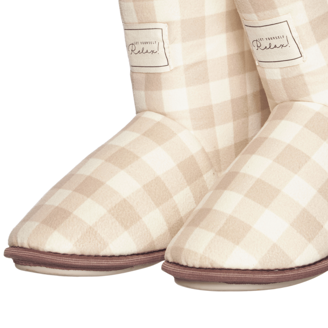 A Bota Feminina Xadrez Cano Médio Slow Down Lua Lua é o convite perfeito para momentos de aconchego e bem-estar. Com design delicado e toque macio, ela transforma qualquer momento em casa em uma experiência ainda mais confortável e especial.