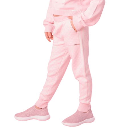 A Pituchinhus reinventa o clássico jogging com uma abordagem emocional nesta calça de tricot premium. O design combina: