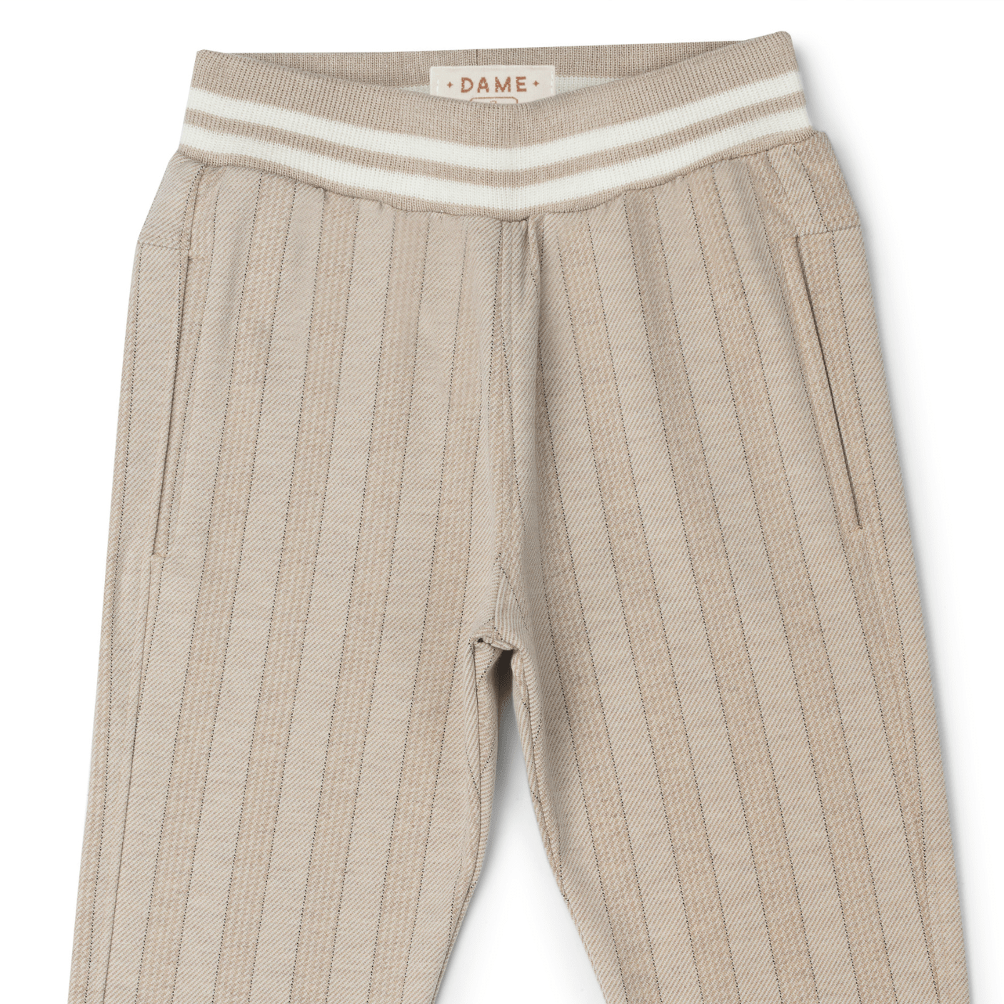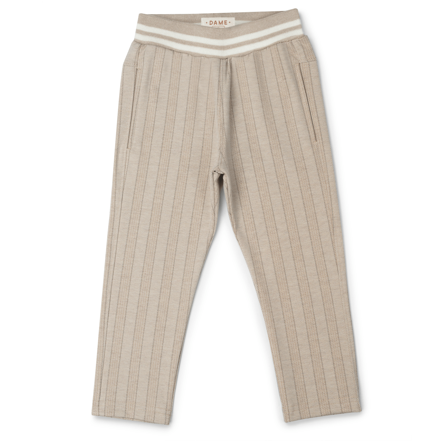 A modelagem reta com cintura confortável valoriza a silhueta de forma natural, enquanto o design listrado alonga a perna visualmente, trazendo equilíbrio ao look. O acabamento impecável reforça o compromisso da marca Dame com estilo e qualidade em cada detalhe.