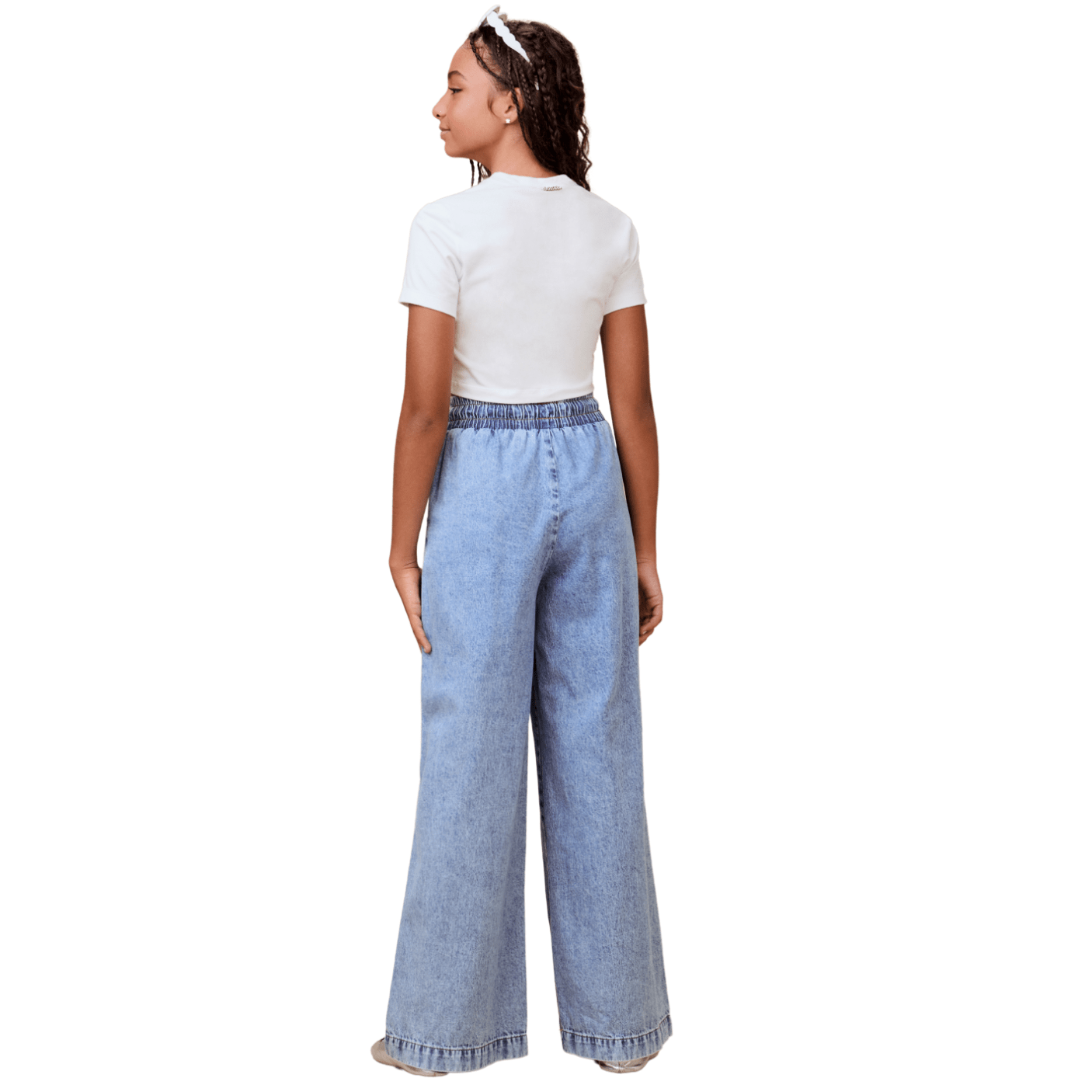 O denim de alta qualidade oferece durabilidade, resistência e maciez, tornando a calça ideal para acompanhar a rotina das adolescentes que desejam estar sempre na moda sem abrir mão do bem-estar. A modelagem ampla é uma das grandes tendências atuais, perfeita para quem gosta de looks estilosos, com personalidade e toque fashion.