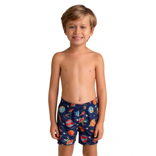 O Calção Praia Espaço Marinho Dedeka é ideal para os pequenos que amam se divertir explorando o universo da imaginação — e das ondas! Com estampa vibrante de planetas, foguetes e estrelas, ele traz um visual alegre e cheio de personalidade, perfeito para os dias de sol e diversão.