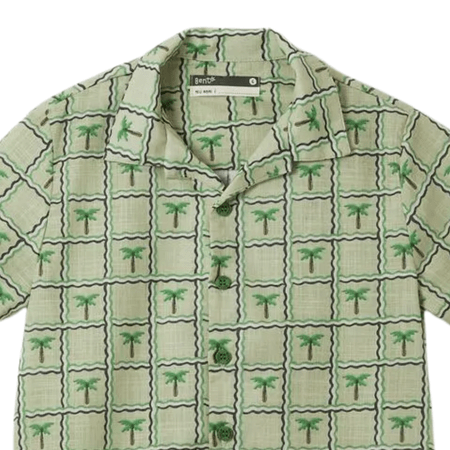 A Camisa Coco Xadrez Bento traz um charme único com sua estampa xadrez em tons de bege e detalhes de coqueiros — perfeita para quem ama um visual descolado, leve e cheio de personalidade.