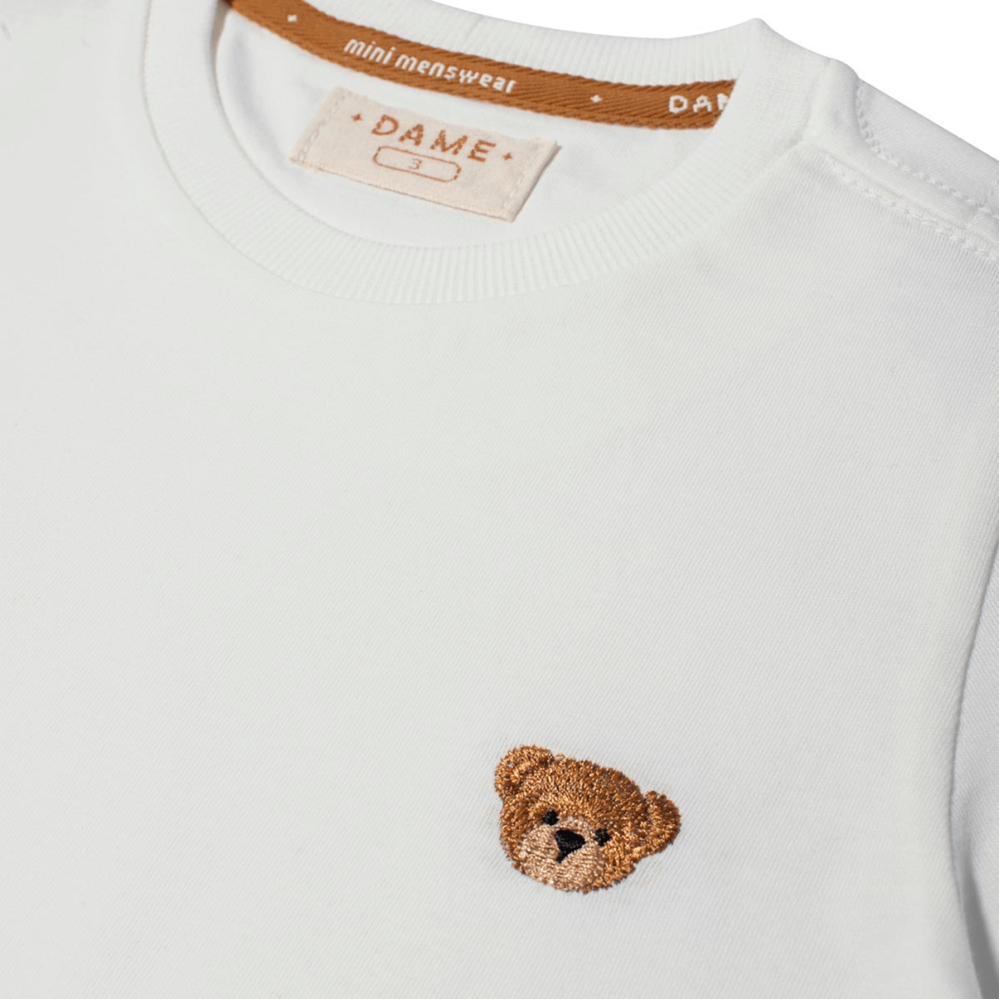 Camiseta Infantil Algodão Bordado Teddy Off White Dame