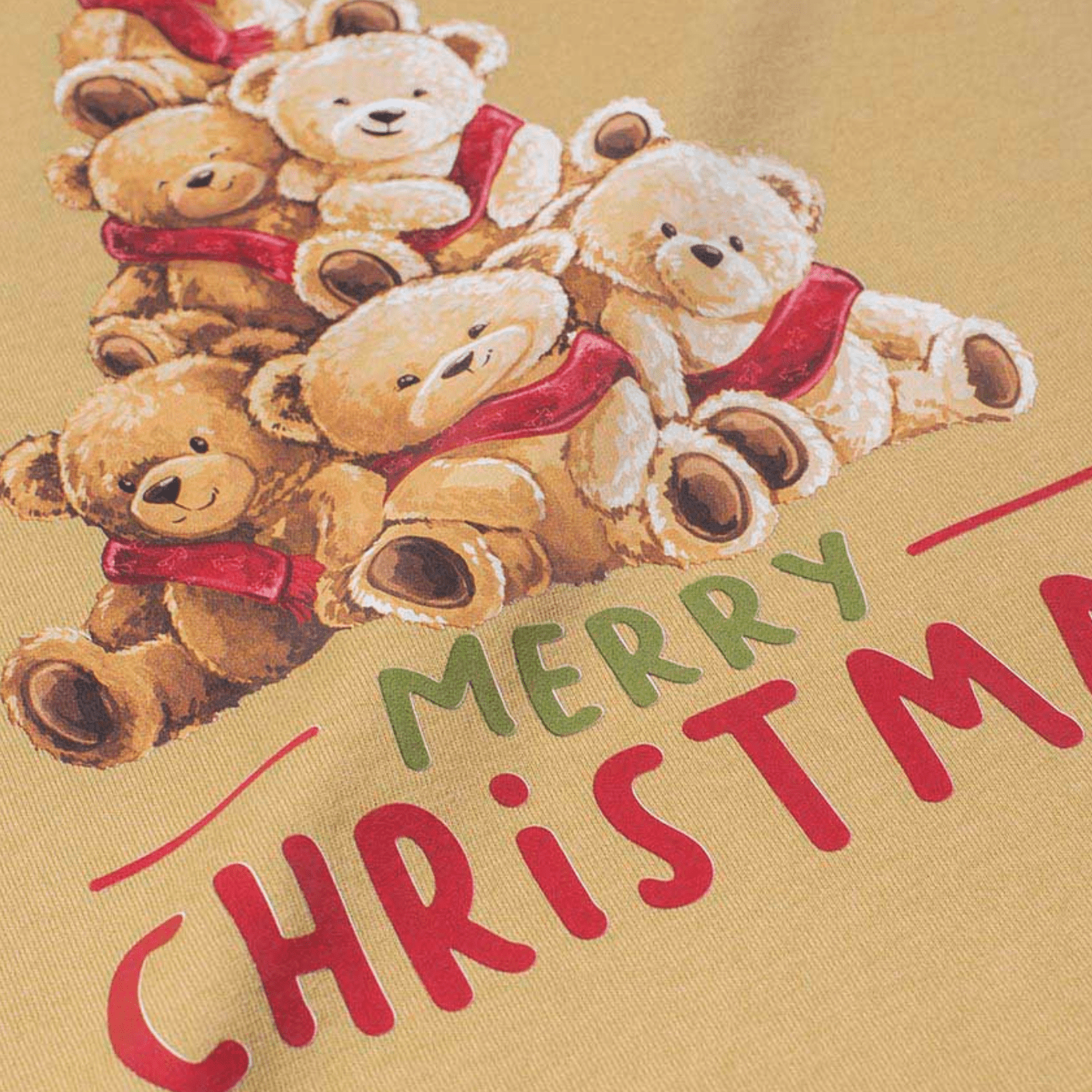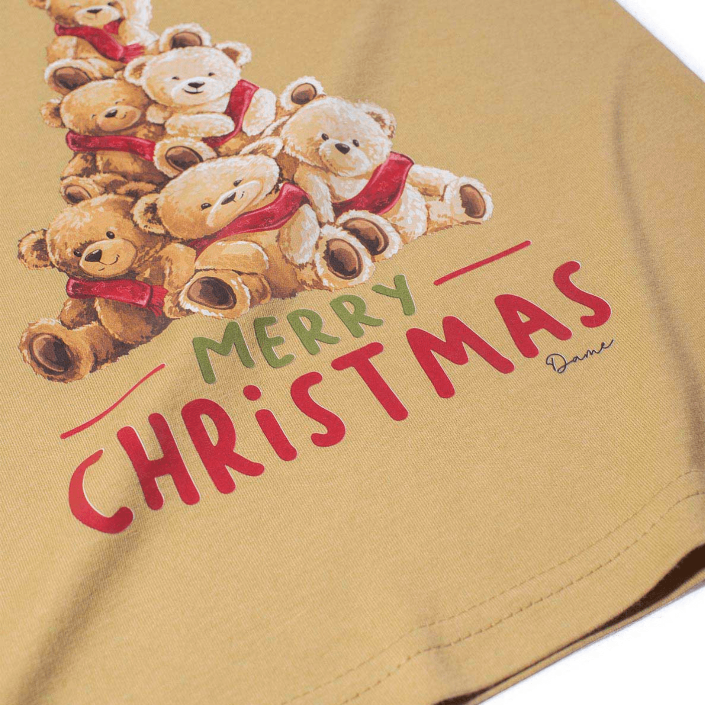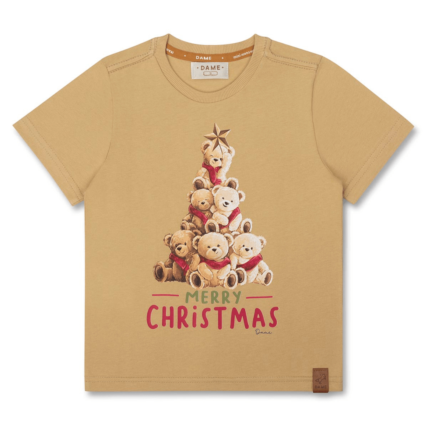 O Natal fica ainda mais especial com a Camiseta Teddy Natal Bege Dame! Uma peça encantadora que traz os icônicos ursinhos Teddy empilhados como uma árvore de Natal, com a mensagem "Merry Christmas" em destaque. É o look perfeito para celebrar momentos em família, usar em fotos natalinas ou presentear quem você ama.