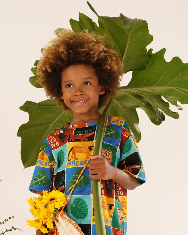 O destaque dessa peça é, sem dúvida, a estampa Animalito – uma divertida e colorida ilustração de bichos fofos que vai encantar qualquer criança. Cada desenho foi pensado para despertar a imaginação, trazendo um toque lúdico e alegre ao visual. Os detalhes da estampa criam uma atmosfera cheia de diversão e personalidade, fazendo com que a criança se sinta parte de um mundo mágico de animais adoráveis.