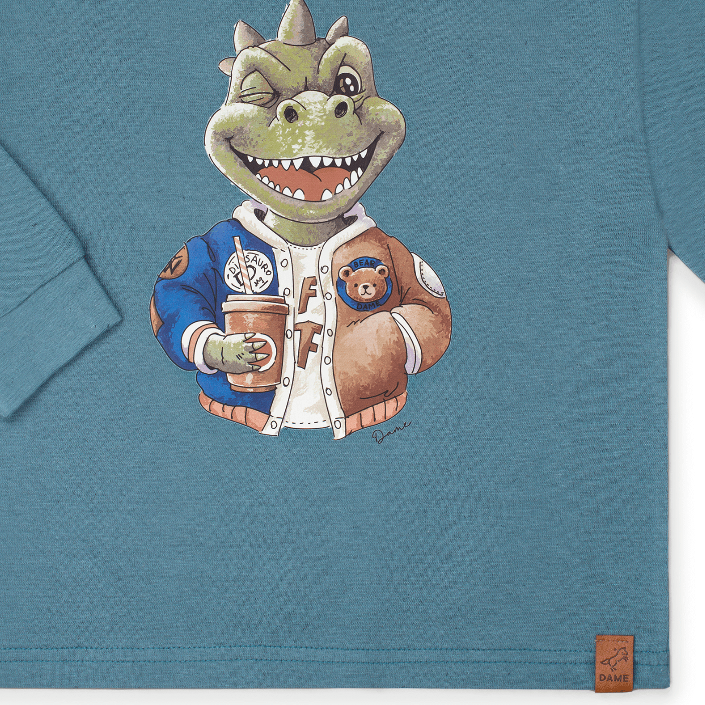 Camiseta Manga Longa Dino Aquamarine – Estilo Divertido com Atitude Urbana | Dame