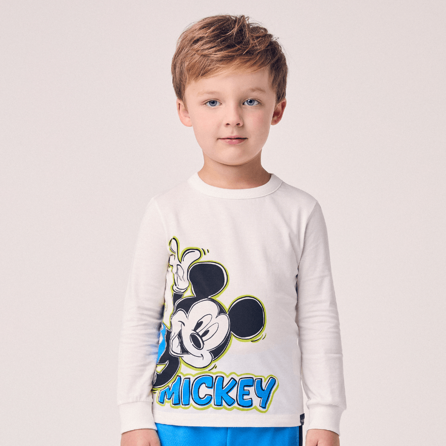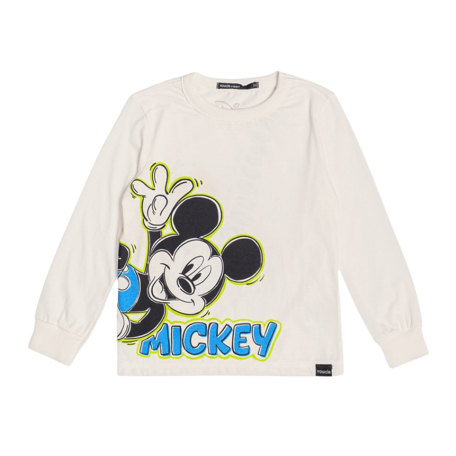 A Camiseta Manga Longa Mickey Bye Bye Off White Youccie é perfeita para os pequenos que amam o personagem mais icônico da Disney.