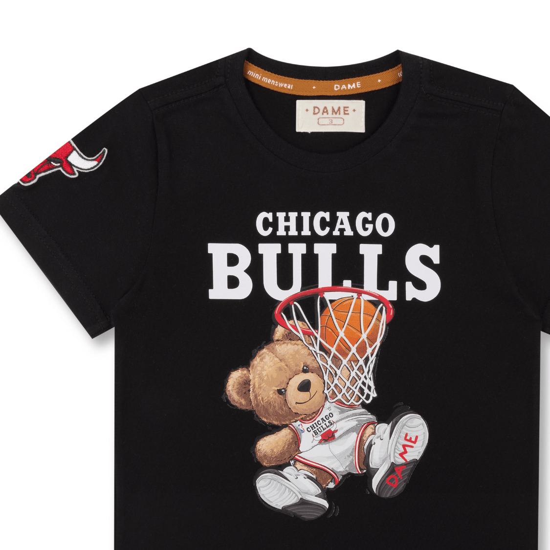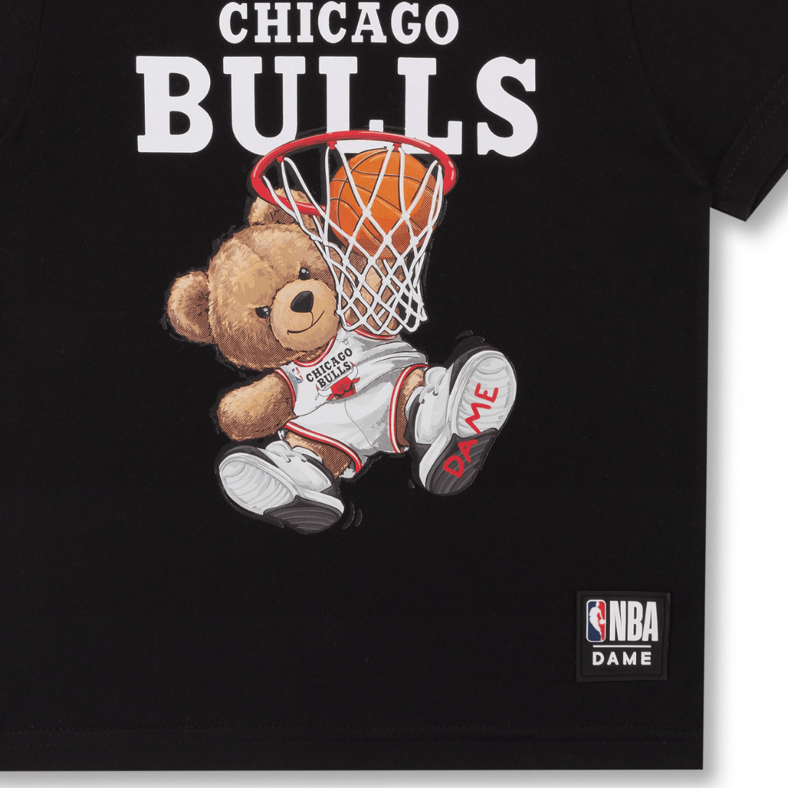 A Camiseta NBA Teddy Chicago Bulls Preta é perfeita para quem gosta de unir estilo urbano, conforto e paixão pelo basquete. Inspirada no icônico time Chicago Bulls, essa peça traz uma estampa criativa de um urso teddy jogando basquete, criando um visual moderno e cheio de personalidade.