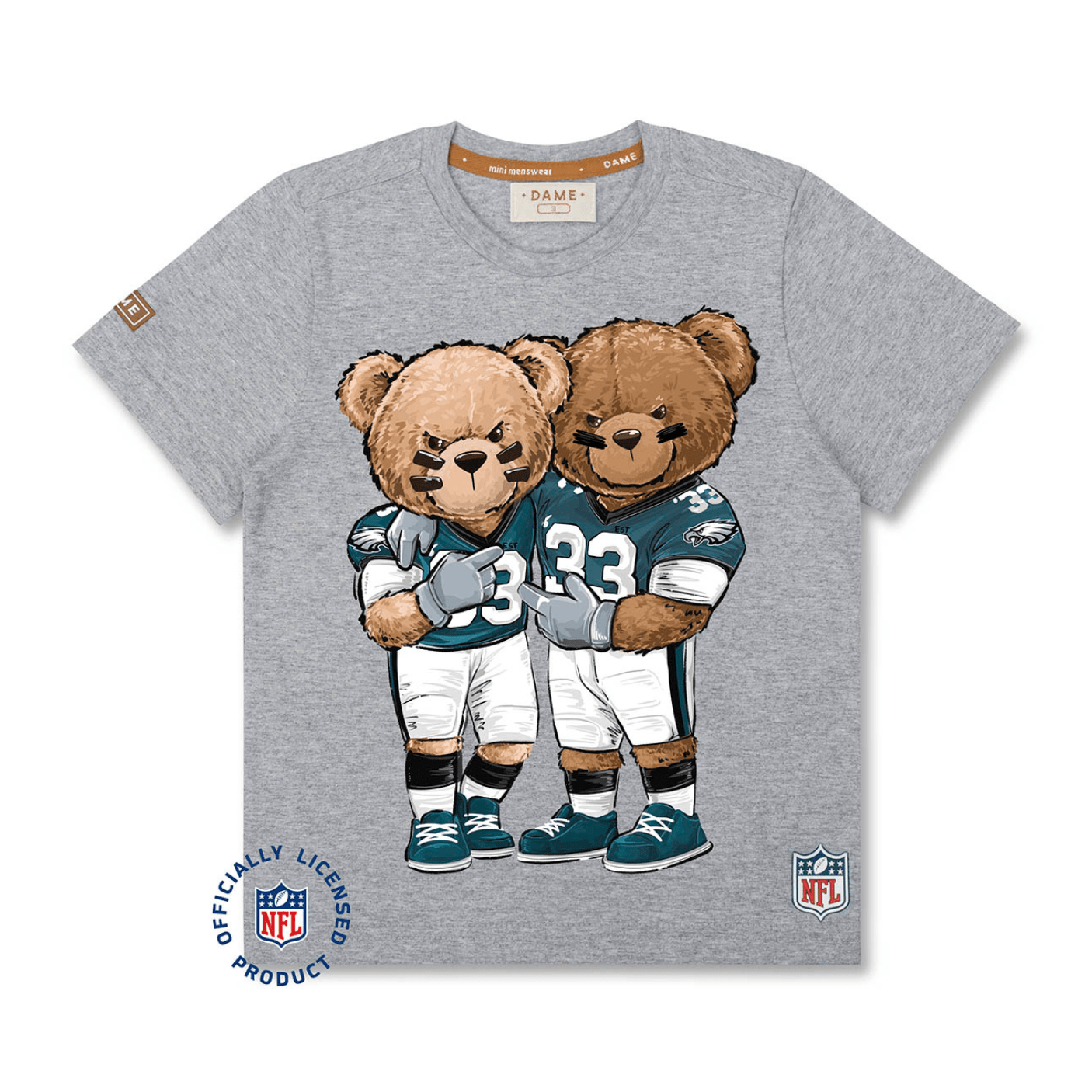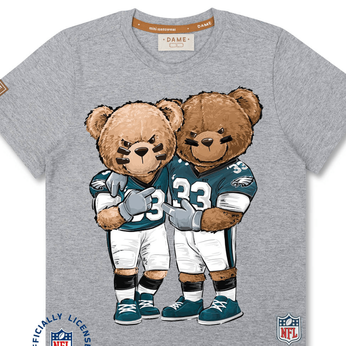Para quem é fã de estilo e de futebol americano, essa peça é simplesmente indispensável! A Camiseta NFL Teddy Philadelphia Dame traz todo o charme e atitude dos ursos jogadores vestidos com o uniforme da equipe de Philadelphia, em uma ilustração exclusiva, divertida e oficial da NFL.
