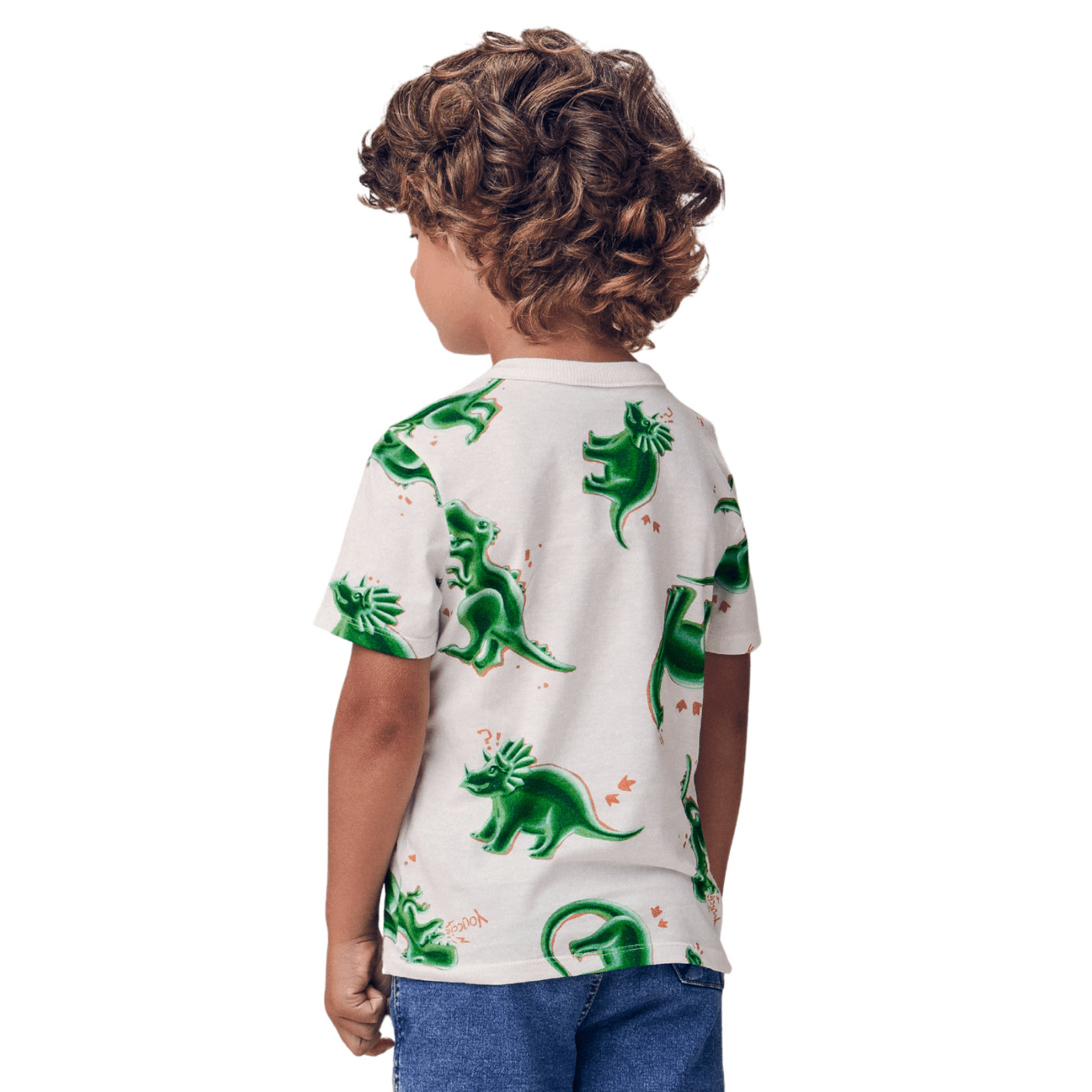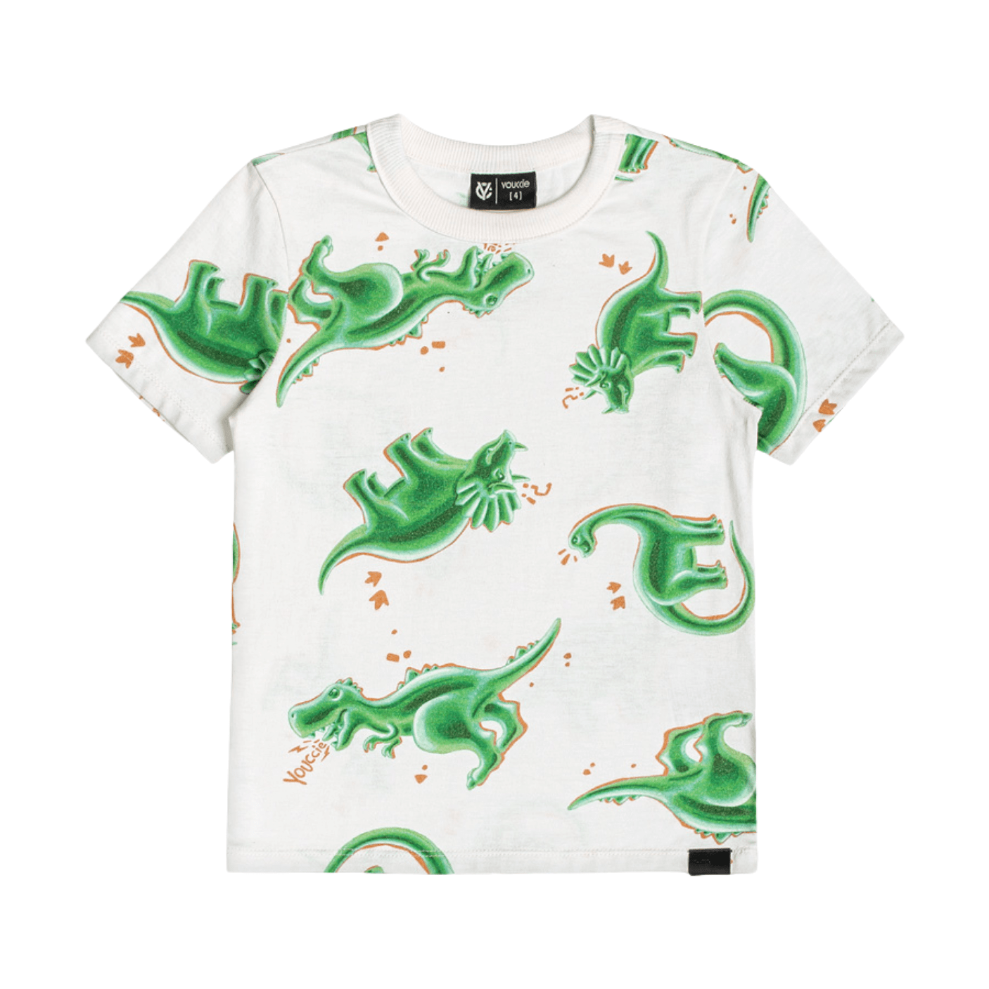Camiseta Off White Total Dinos Gummy Youccie – Estilo, diversão e conforto para os pequenos aventureiros