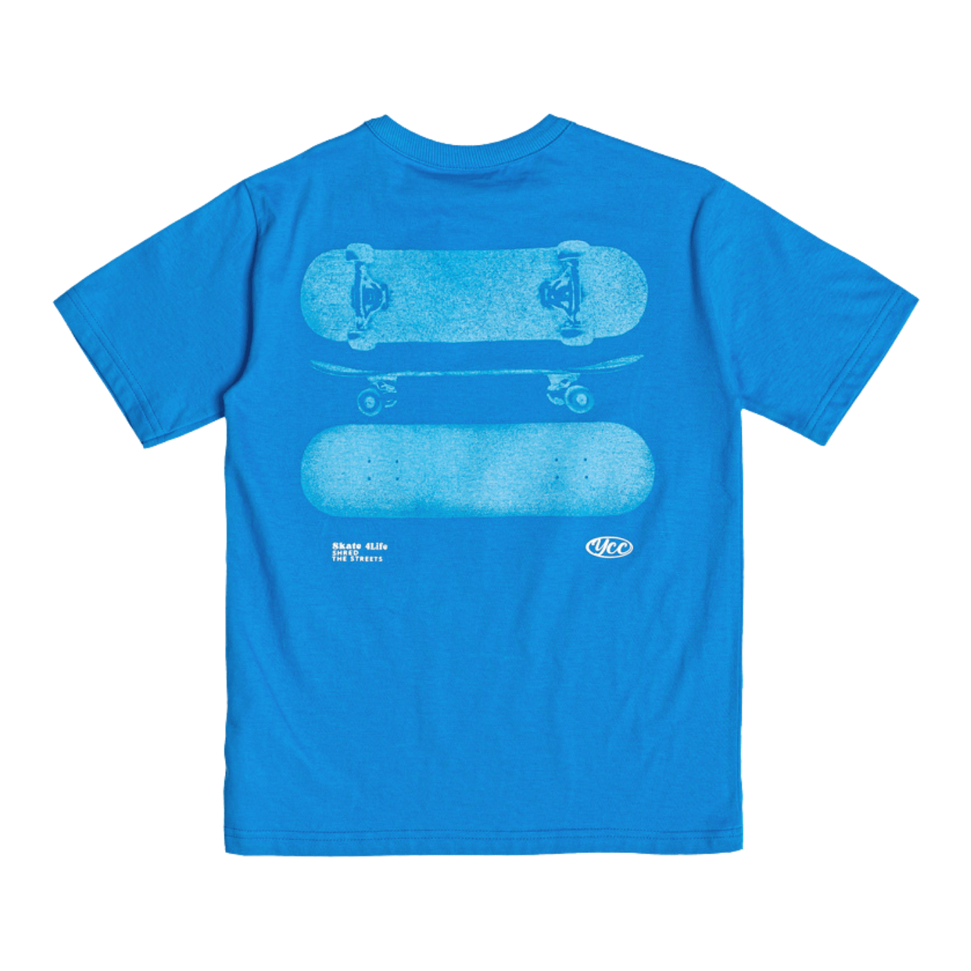 Na parte frontal, traz o lettering “Skate 4Life – Shred The Streets”, e nas costas, o destaque fica por conta da estampa com shapes de skate sobrepostos, criando um visual dinâmico e cheio de movimento.