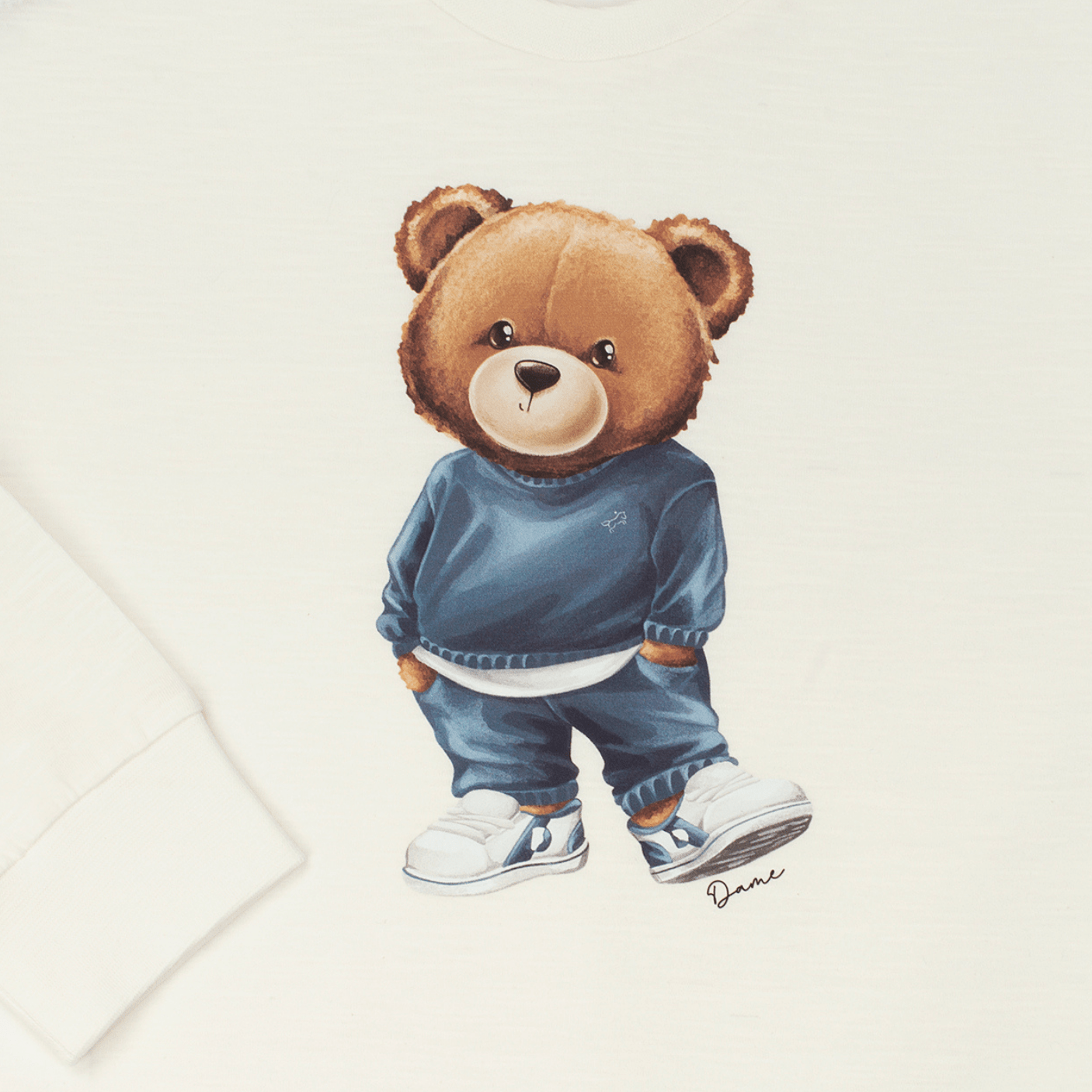 A Camiseta Manga Longa Teddy Hoodie Off da Dame é a escolha ideal para quem busca um look despojado, criativo e cheio de personalidade. Com estampa exclusiva do ursinho Teddy vestindo um hoodie, a peça traduz perfeitamente o estilo urbano com toque divertido que é marca registrada da marca.