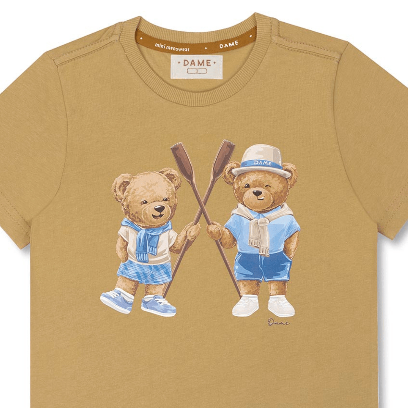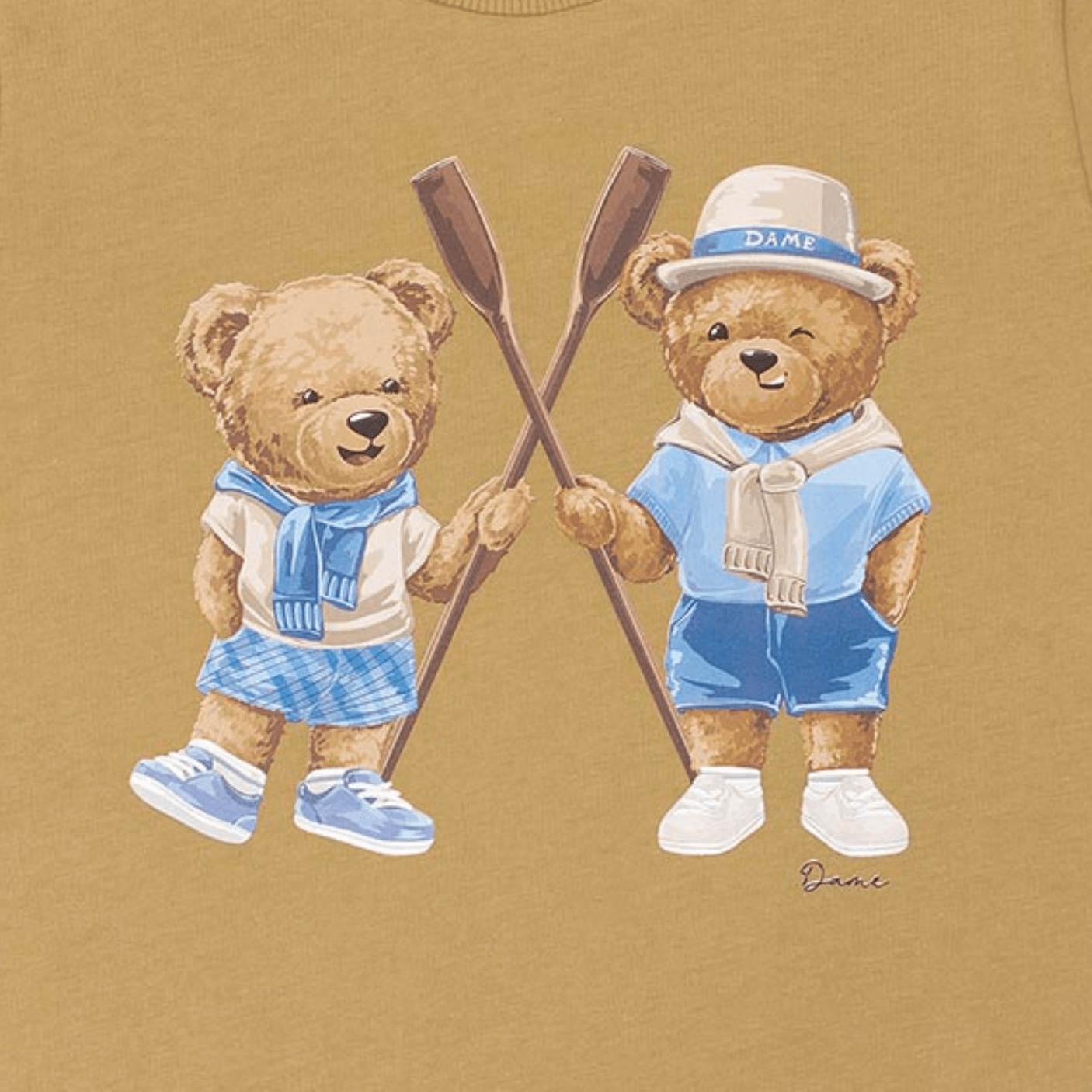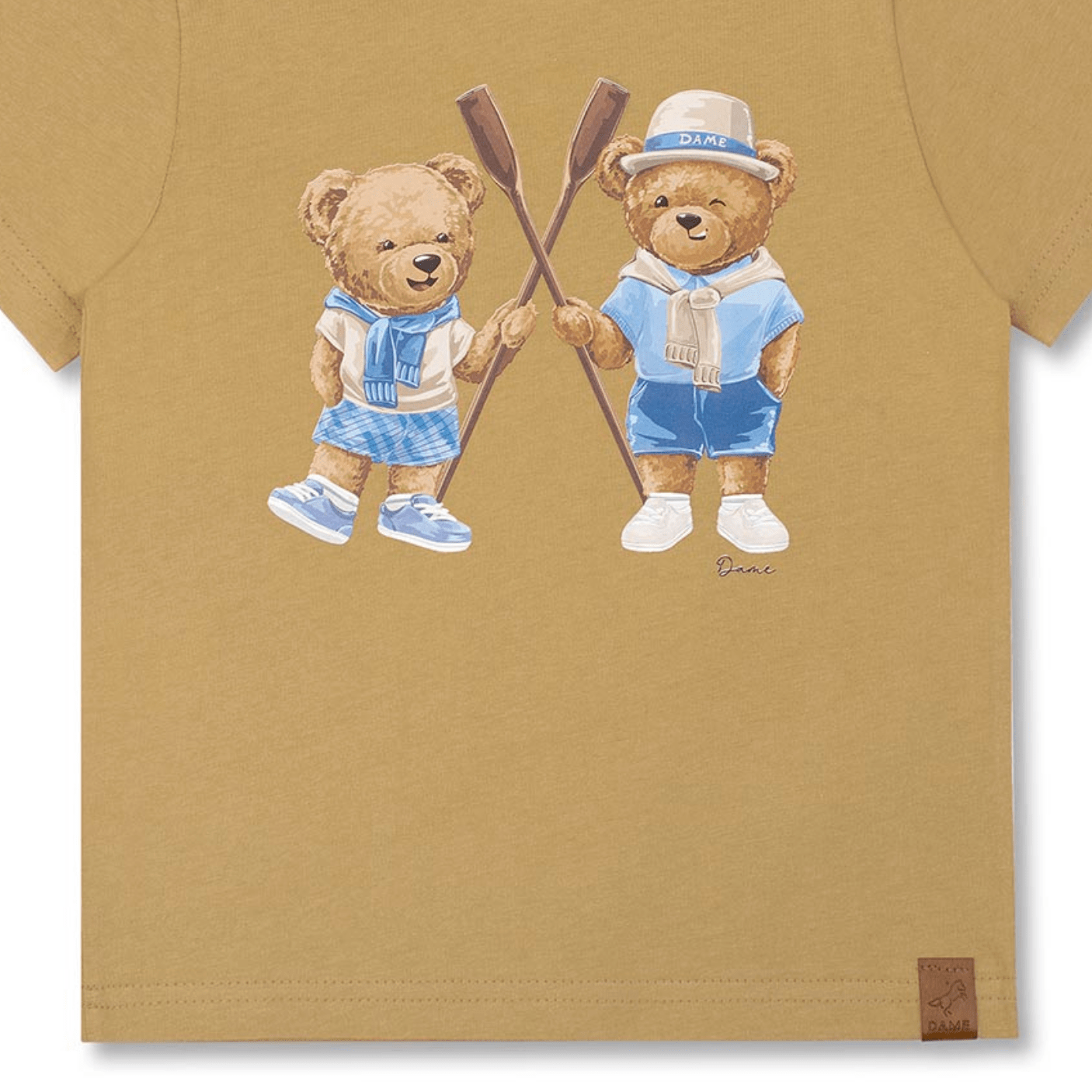 A Camiseta Teddy Remos Bege Dame traz o charme lúdico dos ursos Teddy em uma proposta leve, divertida e cheia de estilo. Com estampa exclusiva de dois ursinhos remadores, a peça une conforto, fofura e um toque vintage que é a cara da marca.