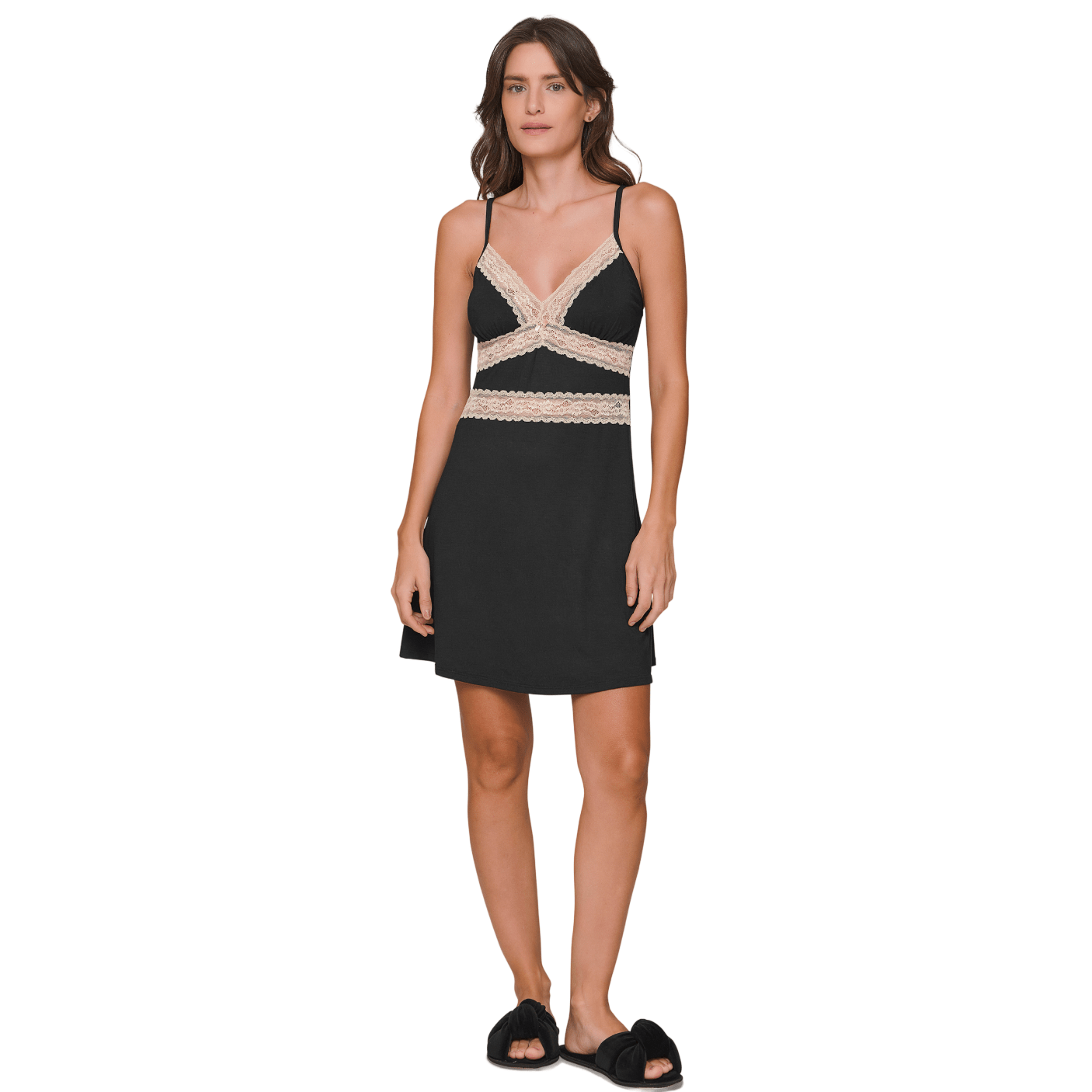 O busto forrado com delicados recortes em renda contrastante valoriza a feminilidade com charme sutil, enquanto o laço decorativo central adiciona um toque romântico à peça. As alças finas e ajustáveis garantem melhor ajuste ao corpo, permitindo conforto e leveza ao dormir ou relaxar.