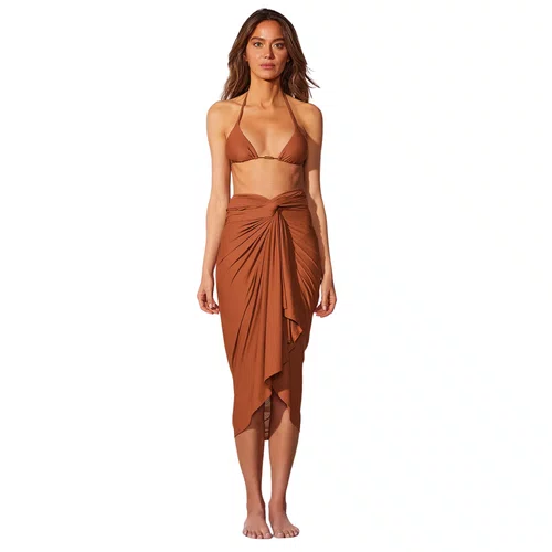 Use como saia, vestido ou saída de praia, combinando com biquínis ou maiôs. Finalize com rasteiras, acessórios dourados e bolsa de palha para um look sofisticado e descomplicado.