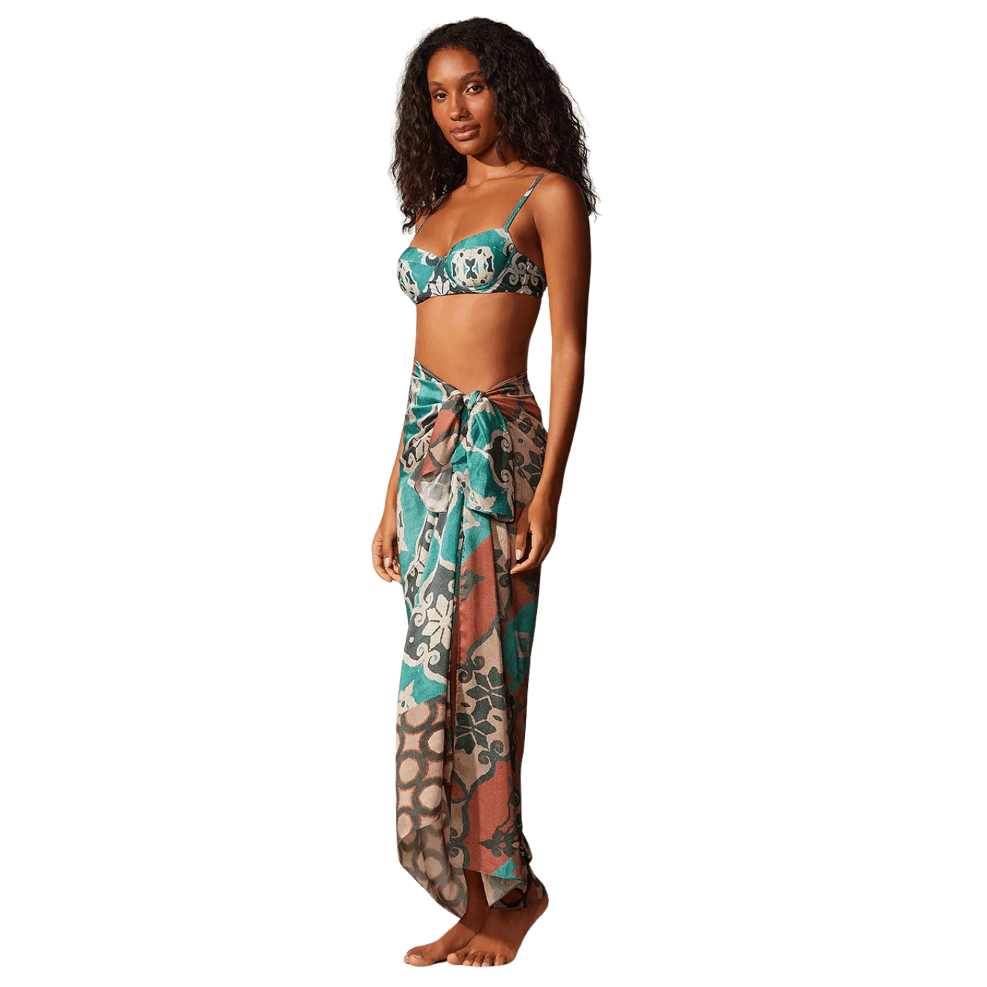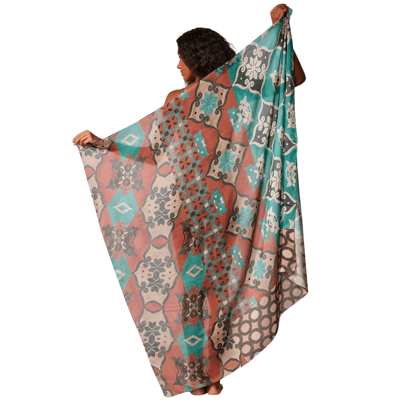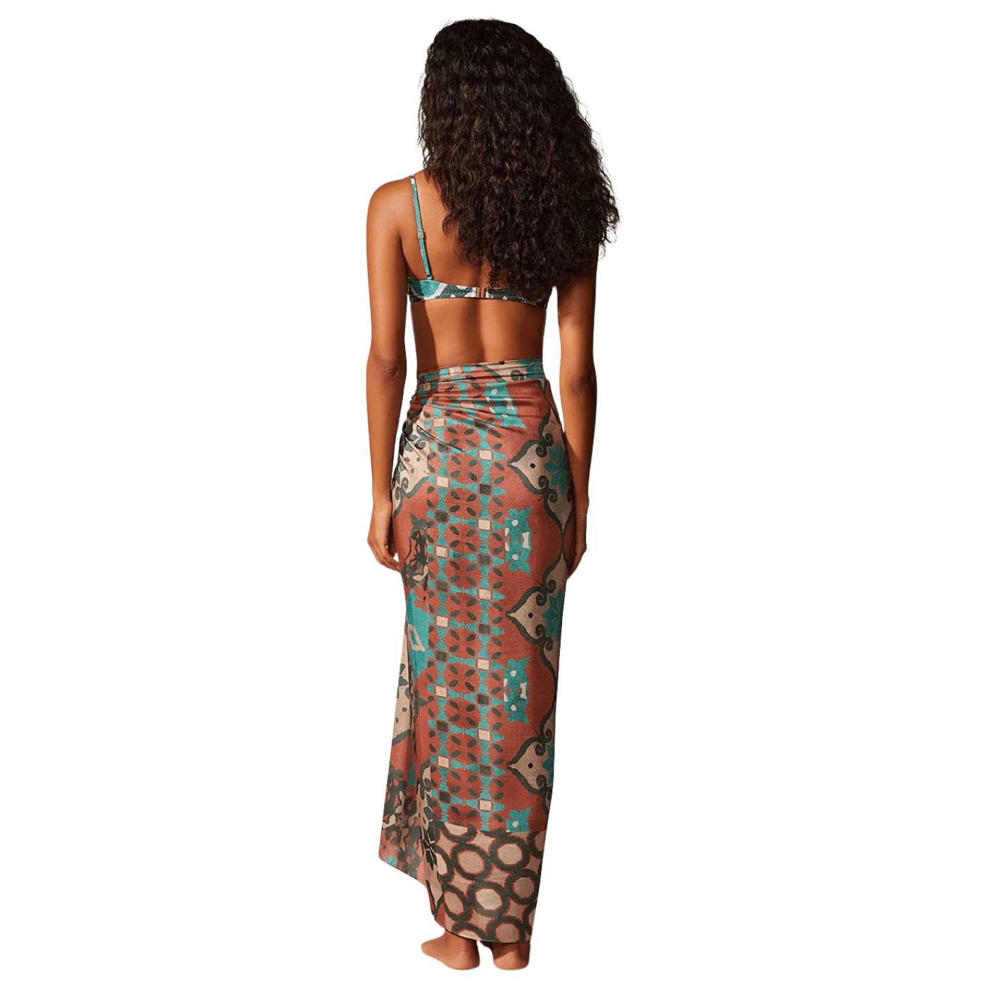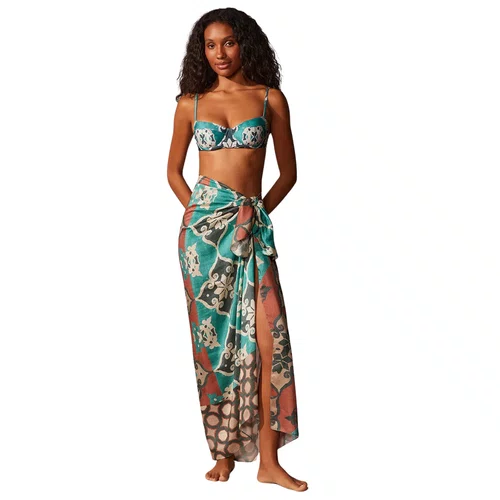 Sua estampa exclusiva mistura tons de marrom, verde turquesa e bege em padrões geométricos sofisticados, inspirados na coleção Nice, que traduz a identidade única da Cia Marítima, referência em moda resort e praia. O modelo pode ser usado de diversas formas: como saia amarrada na cintura, vestido, saída de praia ou até mesmo como acessório criativo, multiplicando as possibilidades de uso em uma única peça.